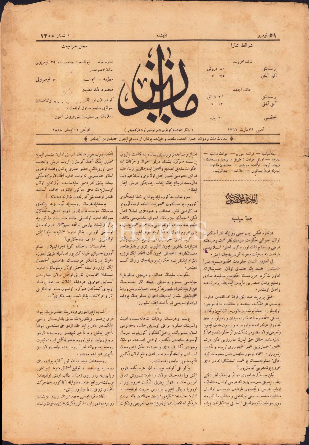 Osmanlıca Mizan gazetesi, 1305, 10 sayfa, 28x40 cm