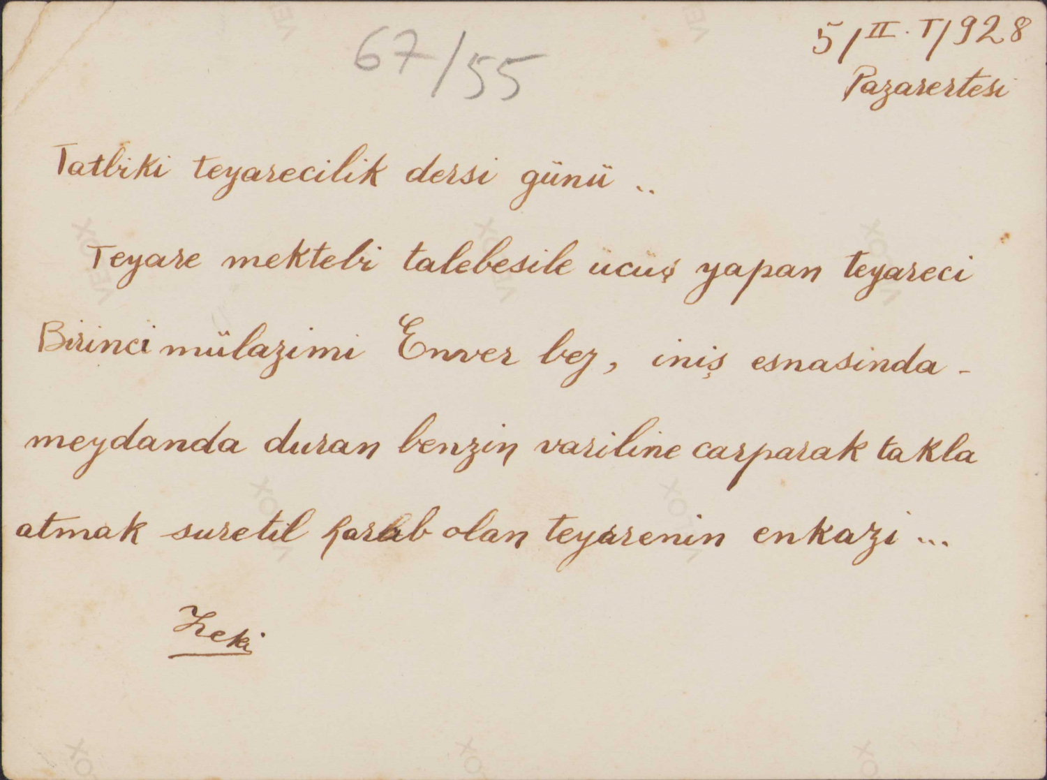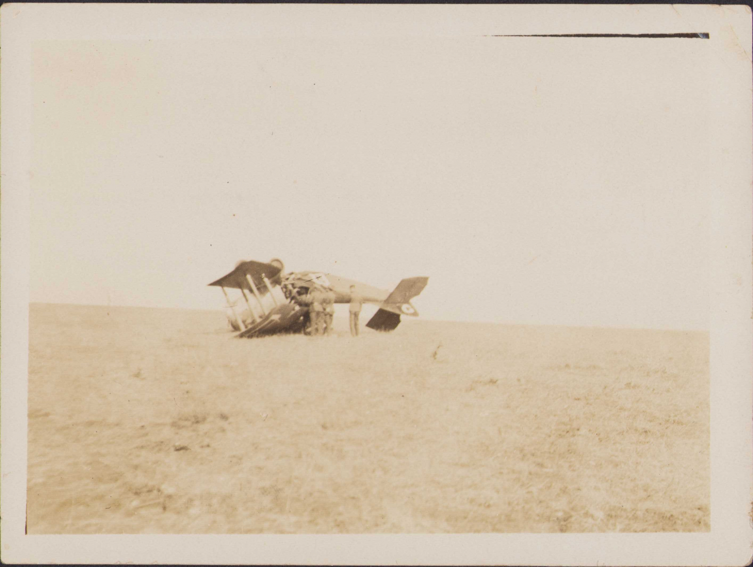 Tayyareci 1.Mülazım Enver Bey'in kaza yapışı, Tatbiki tayyarecilik dersi, 1928 tarihli, 12x9 cm