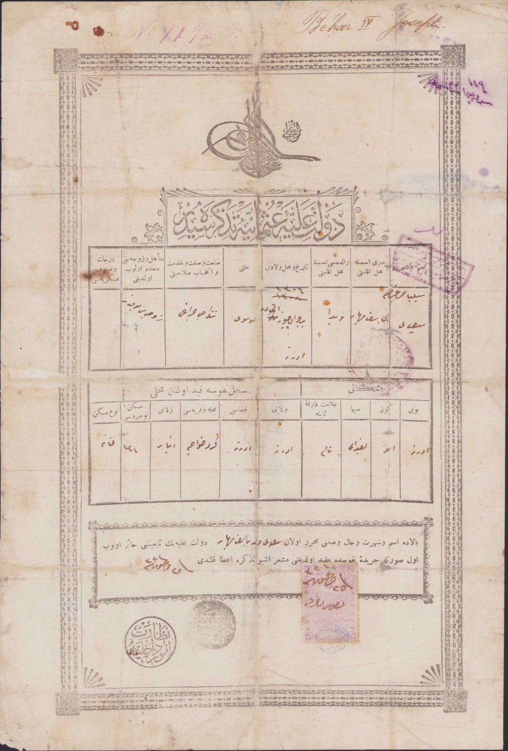 Devlet-i Aliye-i Osmaniye Tezkiresi, Edirne'de Yahudi azınlığa yönelik nüfus dokümanı, 1903 tarihli