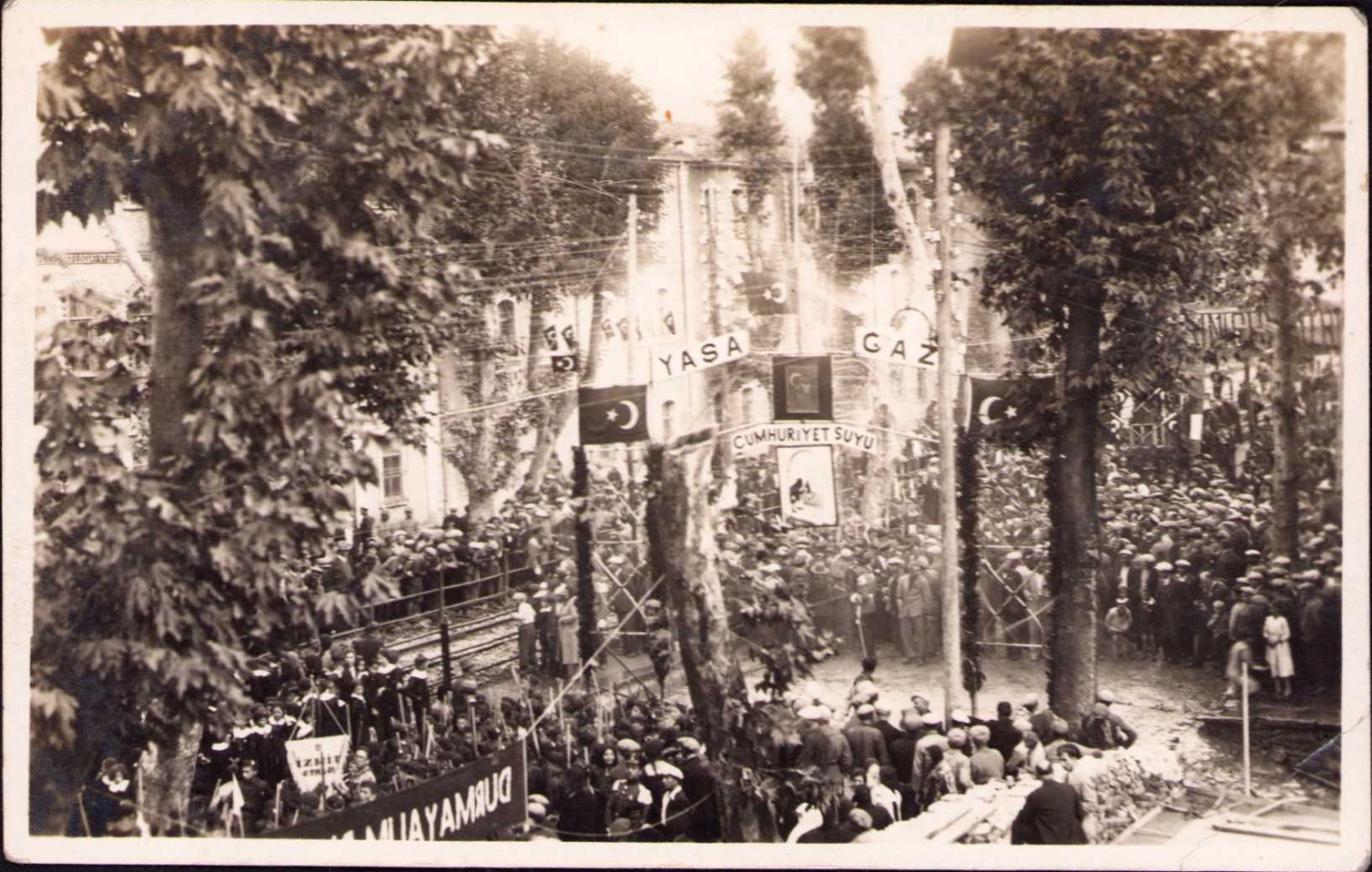 İzmir karşılama, "Yaşa Gazi" "Cumhuriyet Suyu" pankartlı