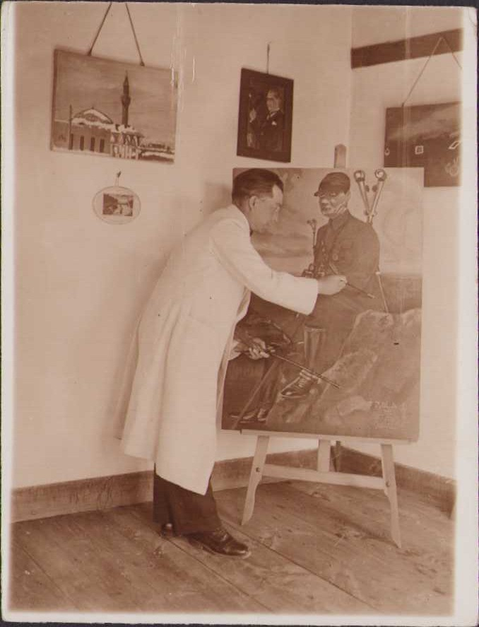 Meslek, Atatürk portresi çalışan bir ressam, erken dönem, 9x11 cm