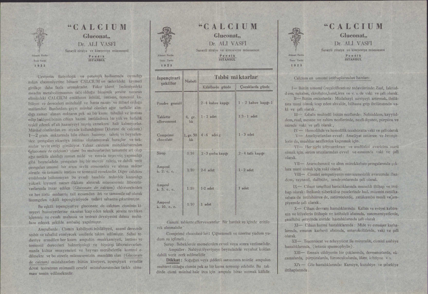 Calcium Gluconat, Dr Ali Vasfi Sanayii ziraiye ve kimyeviye müessesesi,afiş, Pendik İstanbul adresli, 42x30 cm