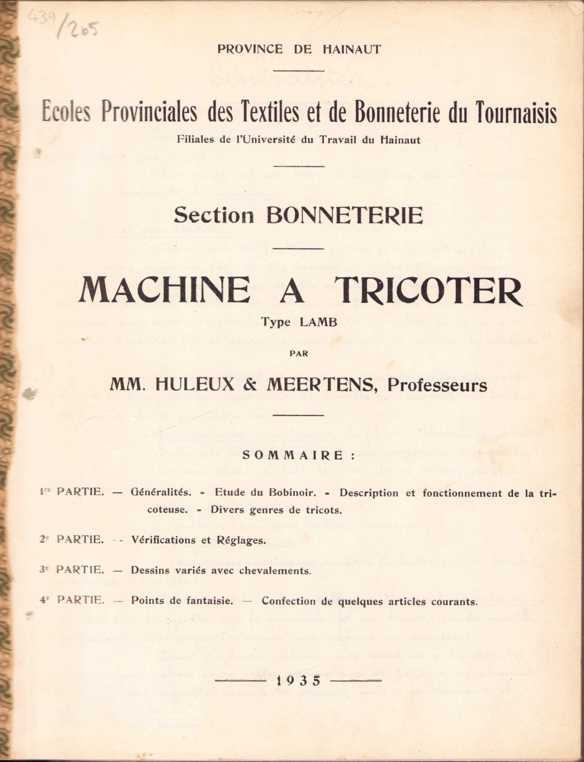 Fransızca Hainaut Eyaleti , Tourna Bölgesi Çorapları İl Tekstil ve Çorap Okulları, MM. Huleux & Meertens, 1935, 3 bölümden oluşmaktadır, 165 sayfa, 20x26 cm