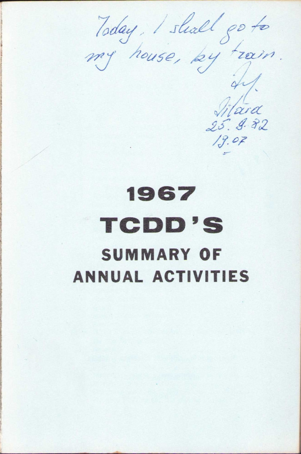 TCDD 1967 Yıllık Faaliyet Raporu, Güzel Sanatlar Matbaası, Ankara, 1967, İngilizce, sonunda Türkiye haritası var, ilk sayfa kopuk, 50 sayfa, 11x16 cm
