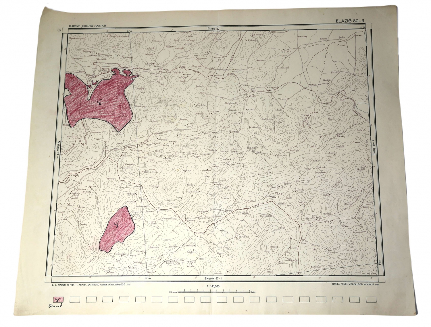 Elazığ jeolojik haritası, Harita Genel Müdürlüğü Basımevi, 1946, 58x49 cm
