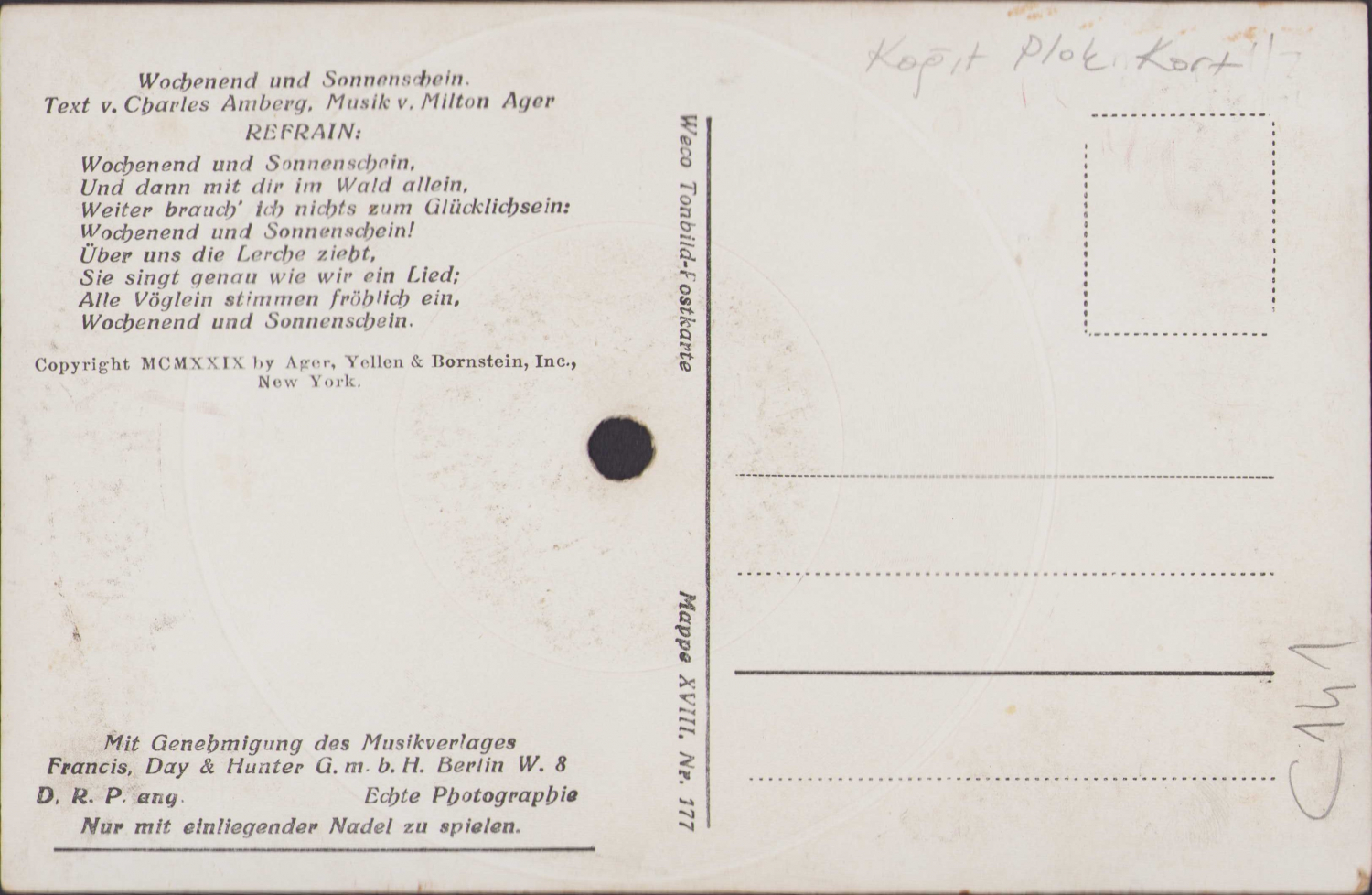 Plak kartpostalı, Wochenend und Sonnenschein şarkısı kayıtlı, Almanya baskısı