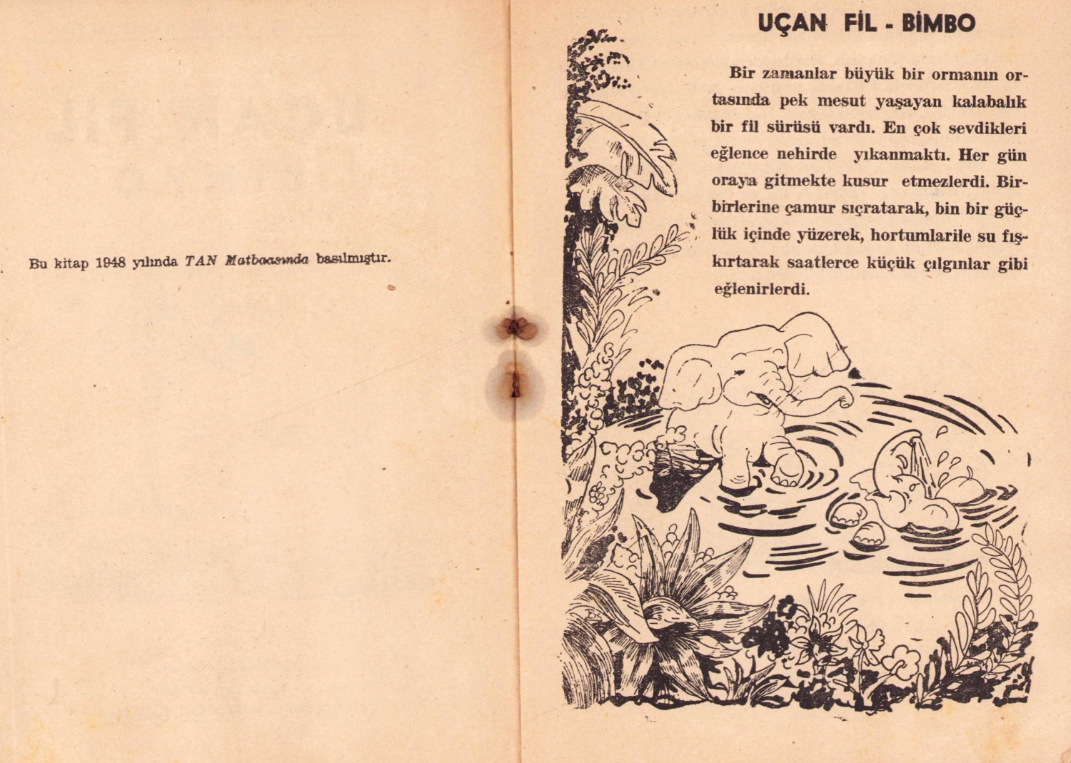 Faydalı Çocuk Kitapları Serisi no.1 - Uçan Fil Bimbo, Ayla Bensan, Tan Matbaası, İstanbul, 1948, 19 sayfa, 14x20 cm