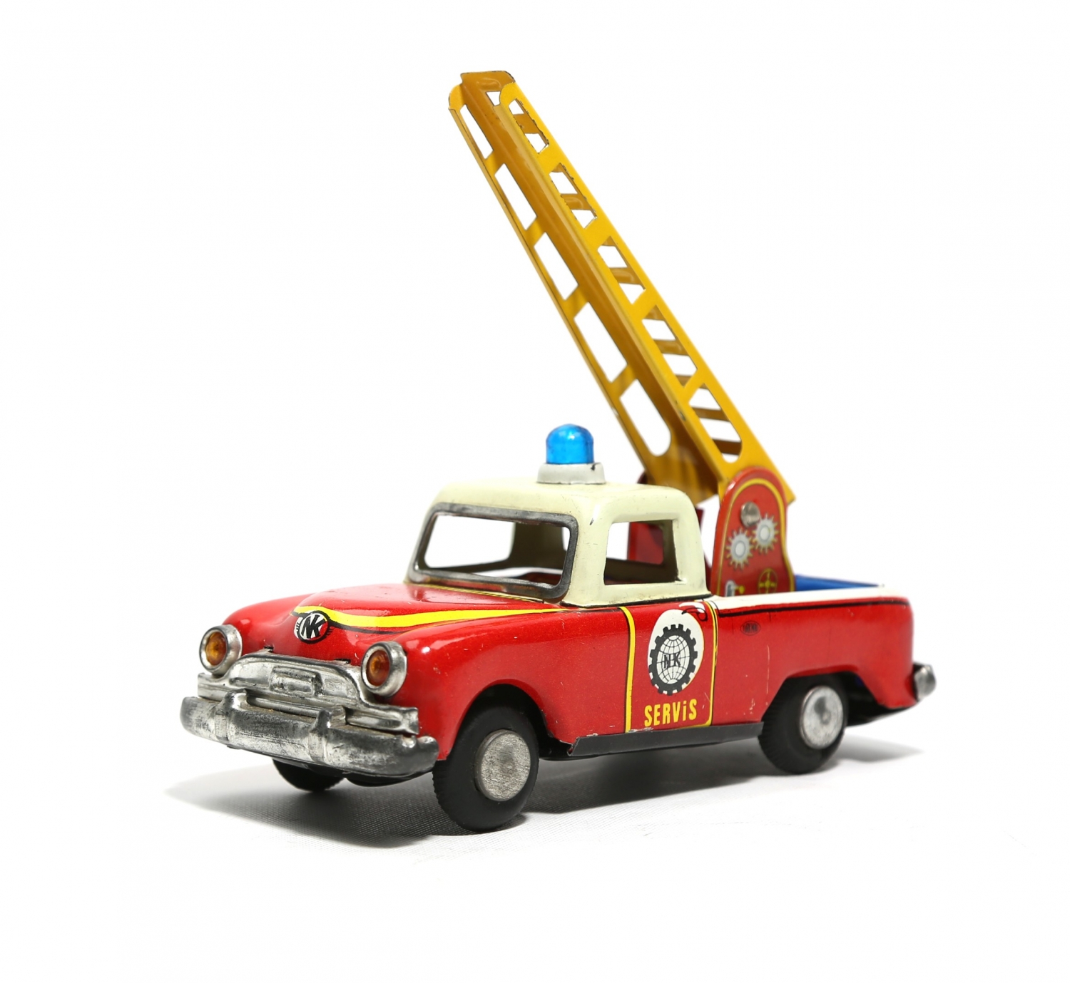 Türk malı, Nekur marka, mavi tepe lambalı teneke itfaiye aracı, 16x7x15 cm