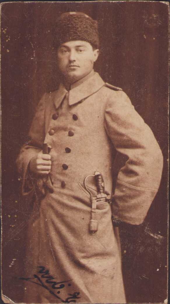 Kalpaklı Osmanlı subayı, stüdyo çekim kabin fotoğrafı,7,5x13,5cm