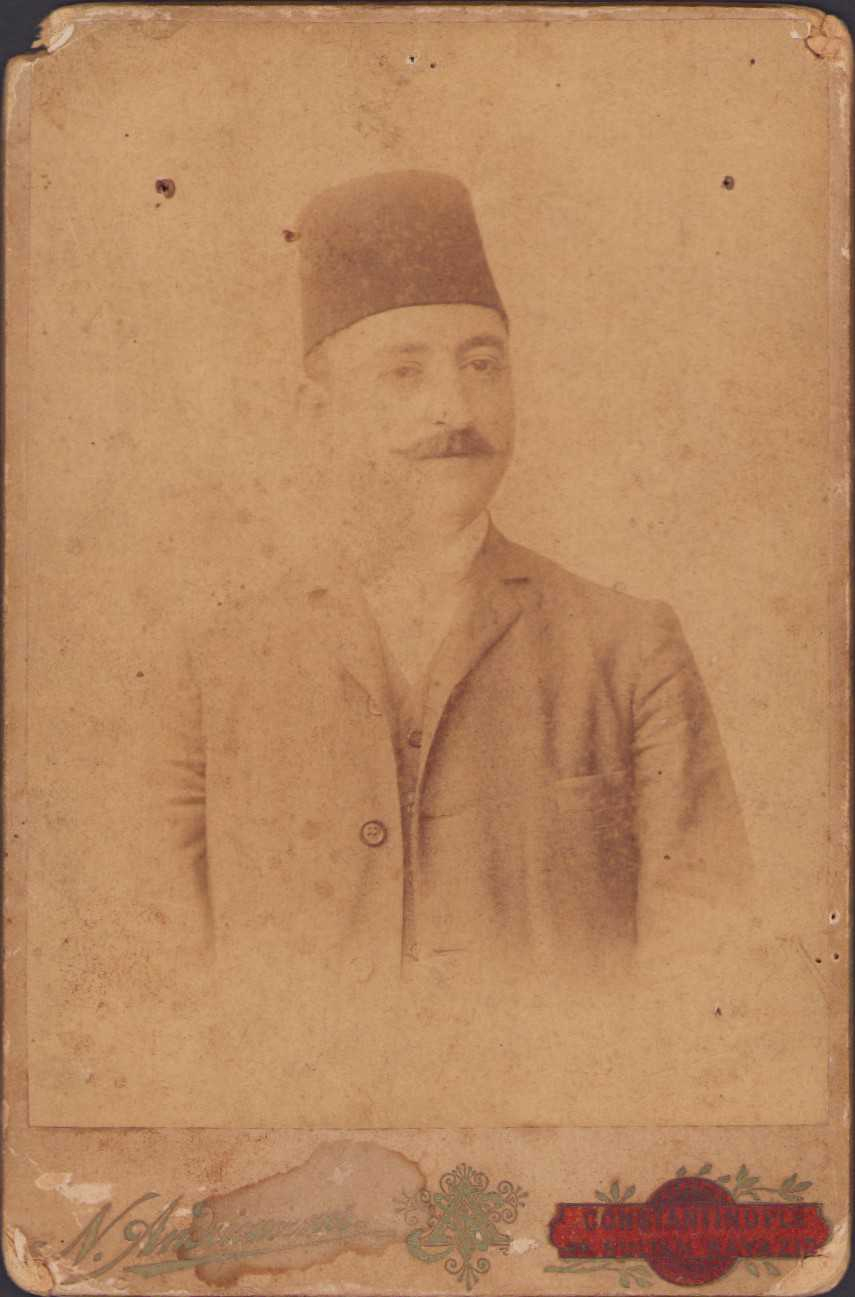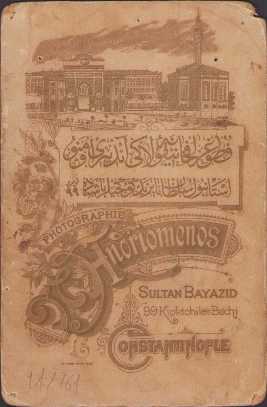 Osmanlı fesli beyefendi, kabin fotoğrafı, Andriomenos fotoğrafhanesi, Beyazıd Constantinople adresli, haliyle