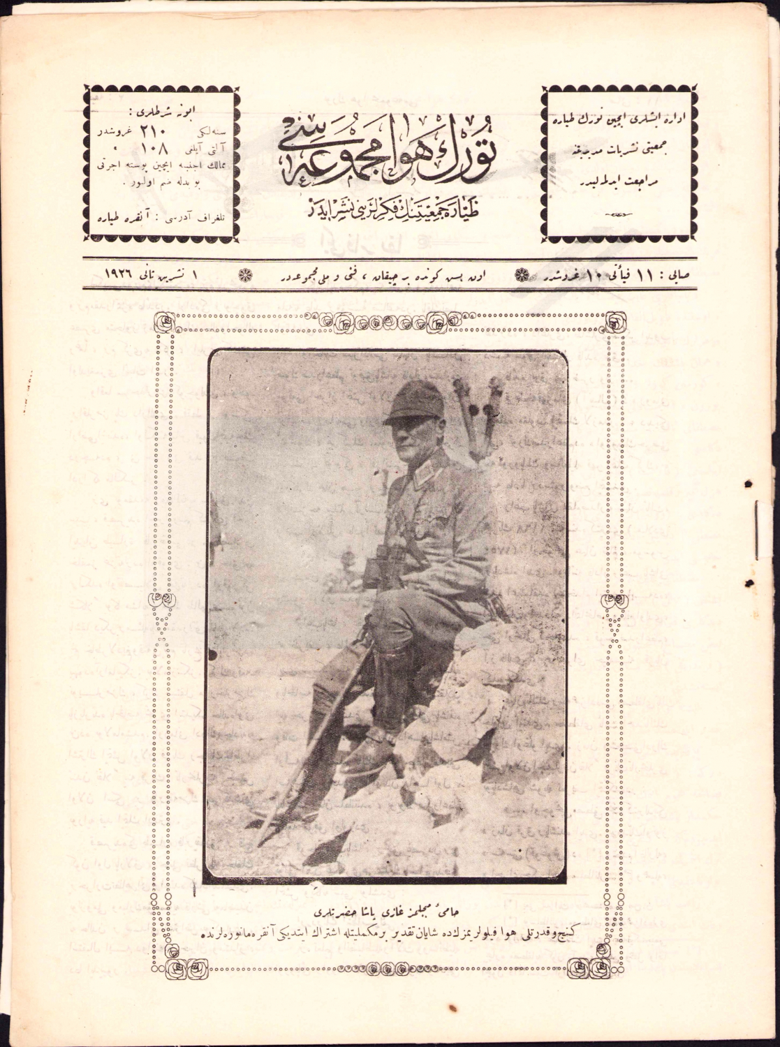 Türk Hava Mecmuası, Atatürk kapaklı, 1926 tarihli, 11. sayı, 25 sayfa 24x32