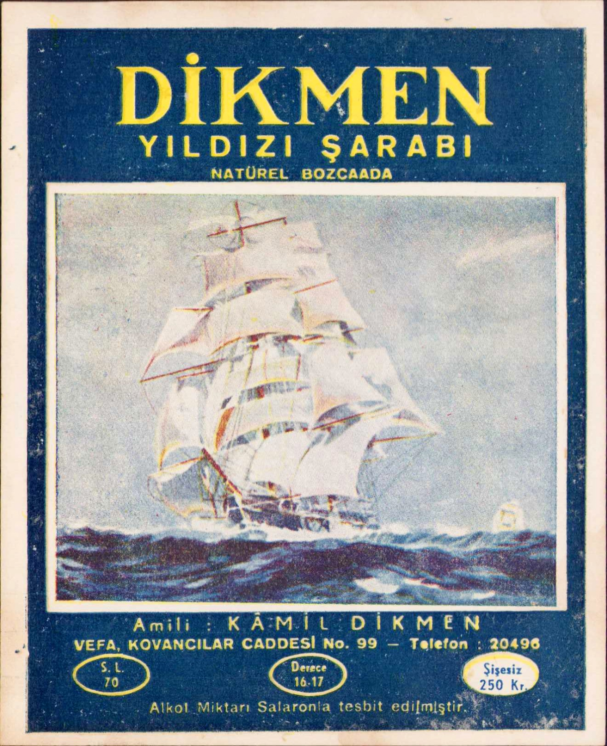 Dikmen Yıldız ve Filiz şarapları etiketleri, 2 adet, Bozcaada-Vefa adresli,11x14 cm