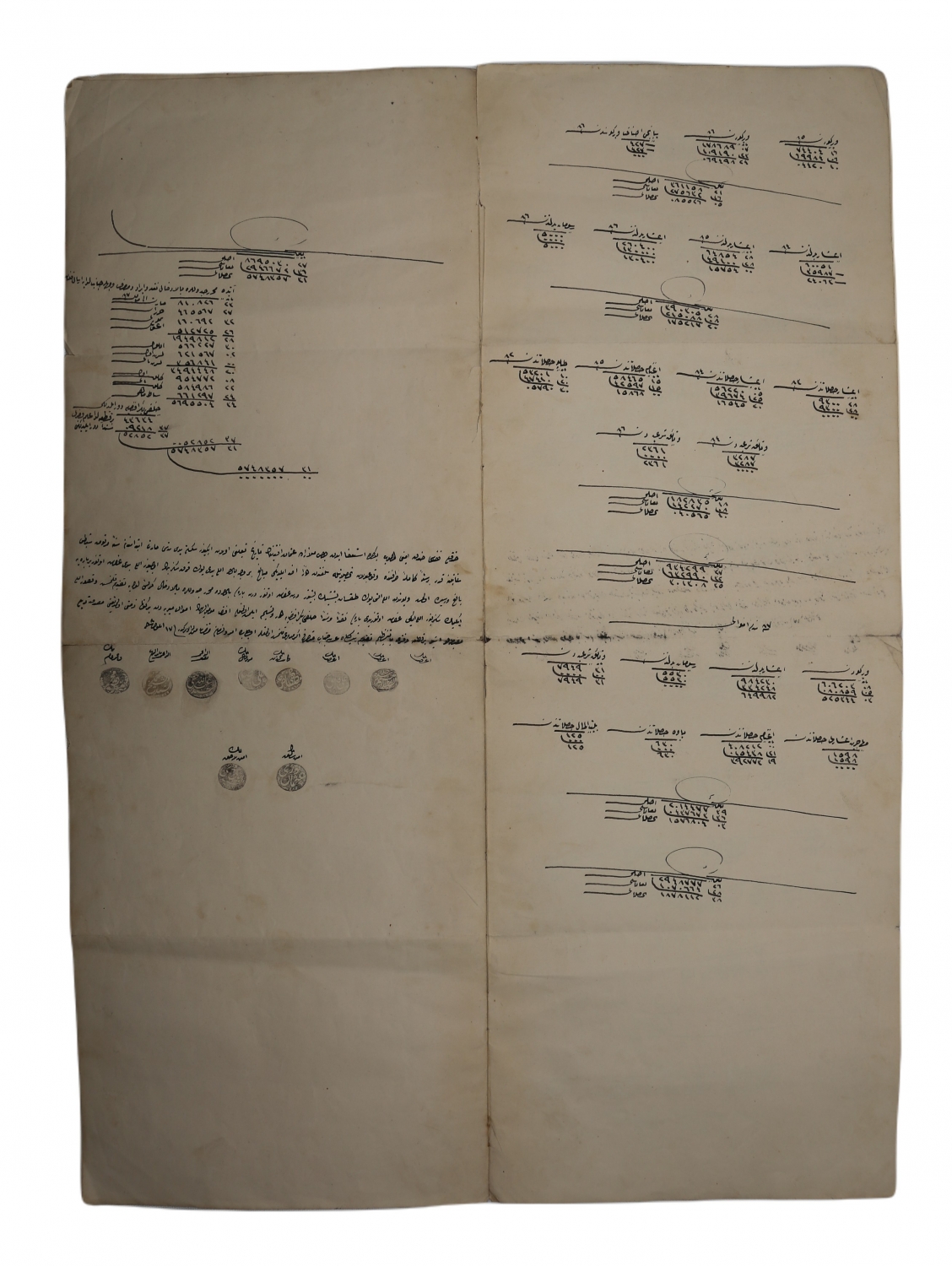 Osmanlı Sandıklı Sandık Emini Molla Zade Osman Efendinin istifası üzerine, üzerinde bulunan zimmetine dair hüccet, 1288, haliyle, 40x54 cm