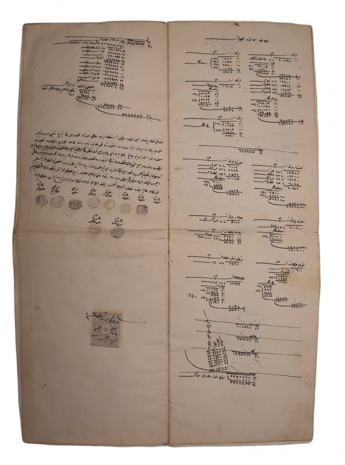 Osmanlı Sandıklı'da Sandık Emini Molla Zade Osman Efendinin istifası üzerine, üzerinde bulunan zimmet defteri, 1288, 20 sayfa, 17x50 cm