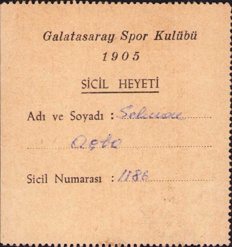 Galatasaray Spor Kulübü 1905 sicil heyeti kartı, 6x7 cm