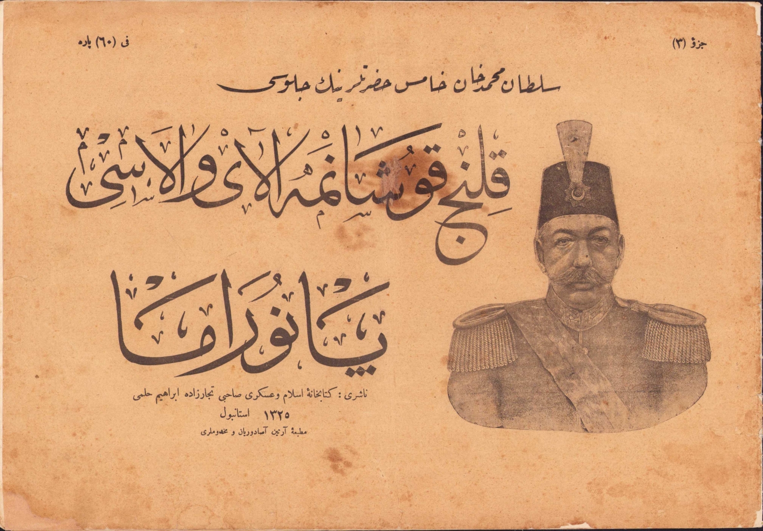 Sultan Reşad'ın kılıç kuşanma törenlerine dair 15 planştan oluşan albüm, Artin Asaduryan Matbaası, İstanbul, 1325 arka kapak yok, 23x33 cm