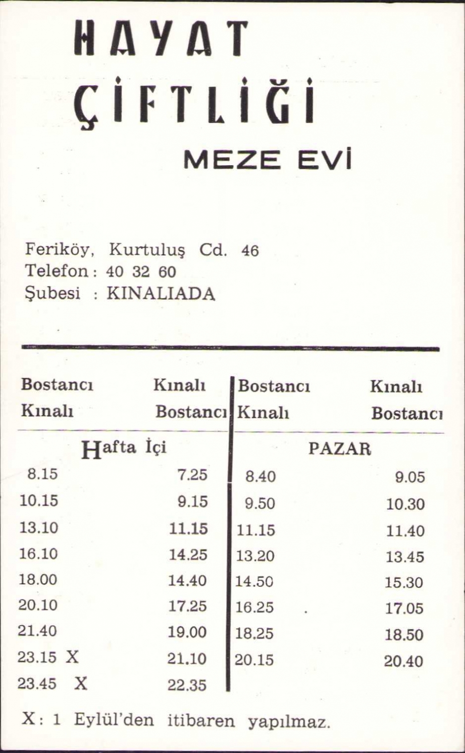 Hayat Çiftliği Meze Evi reklamlı Kınalı - Bostancı vapur sefer saatleri, 7x12 cm