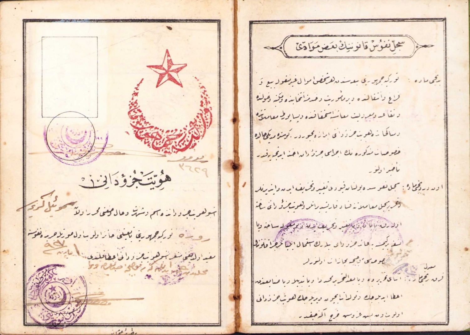 Osmanlıca Hüviyet Cüzdanı, Yahudi Samuel kerimesi Roje, 1927, sayfalar kopuk, 9x12 cm