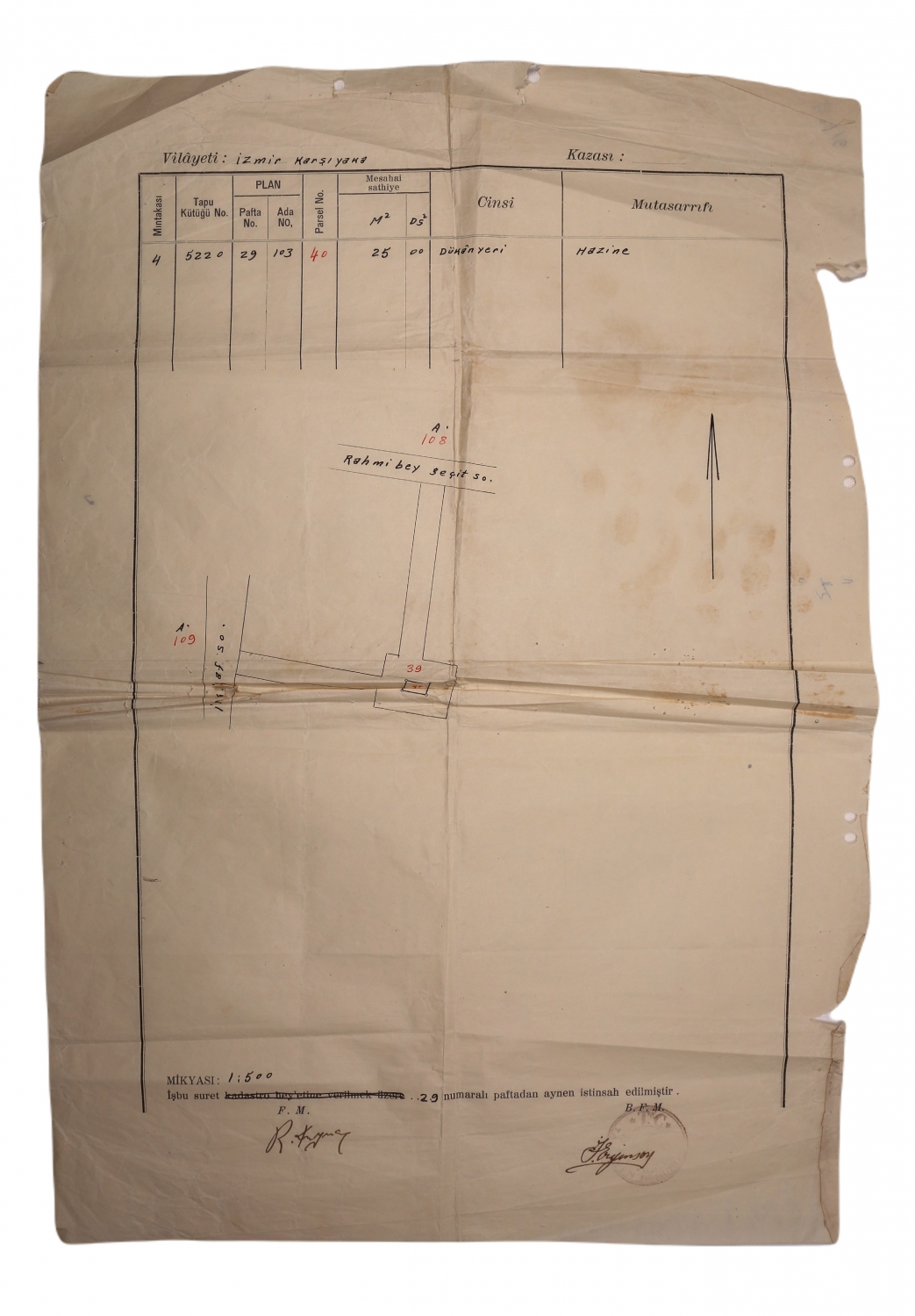 İzmir, Karşıyaka arsa krokisi, 33x47 cm