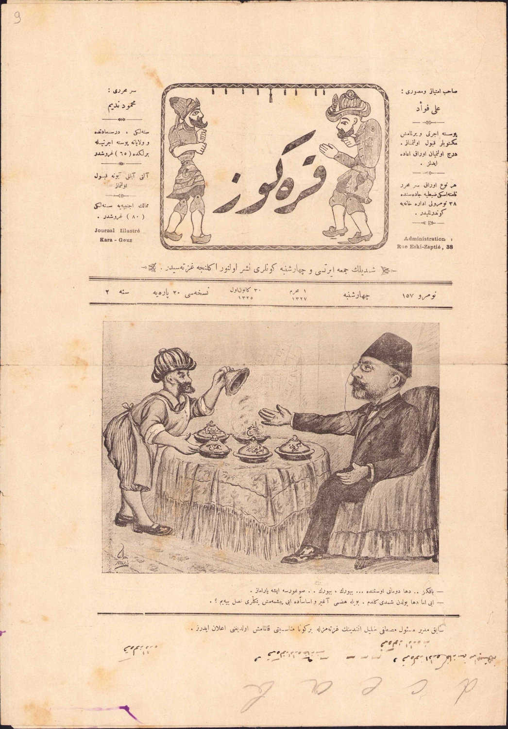 Osmanlıca Karagöz mizah gazetesi, 1327, 4 sayfa, 28x40 cm