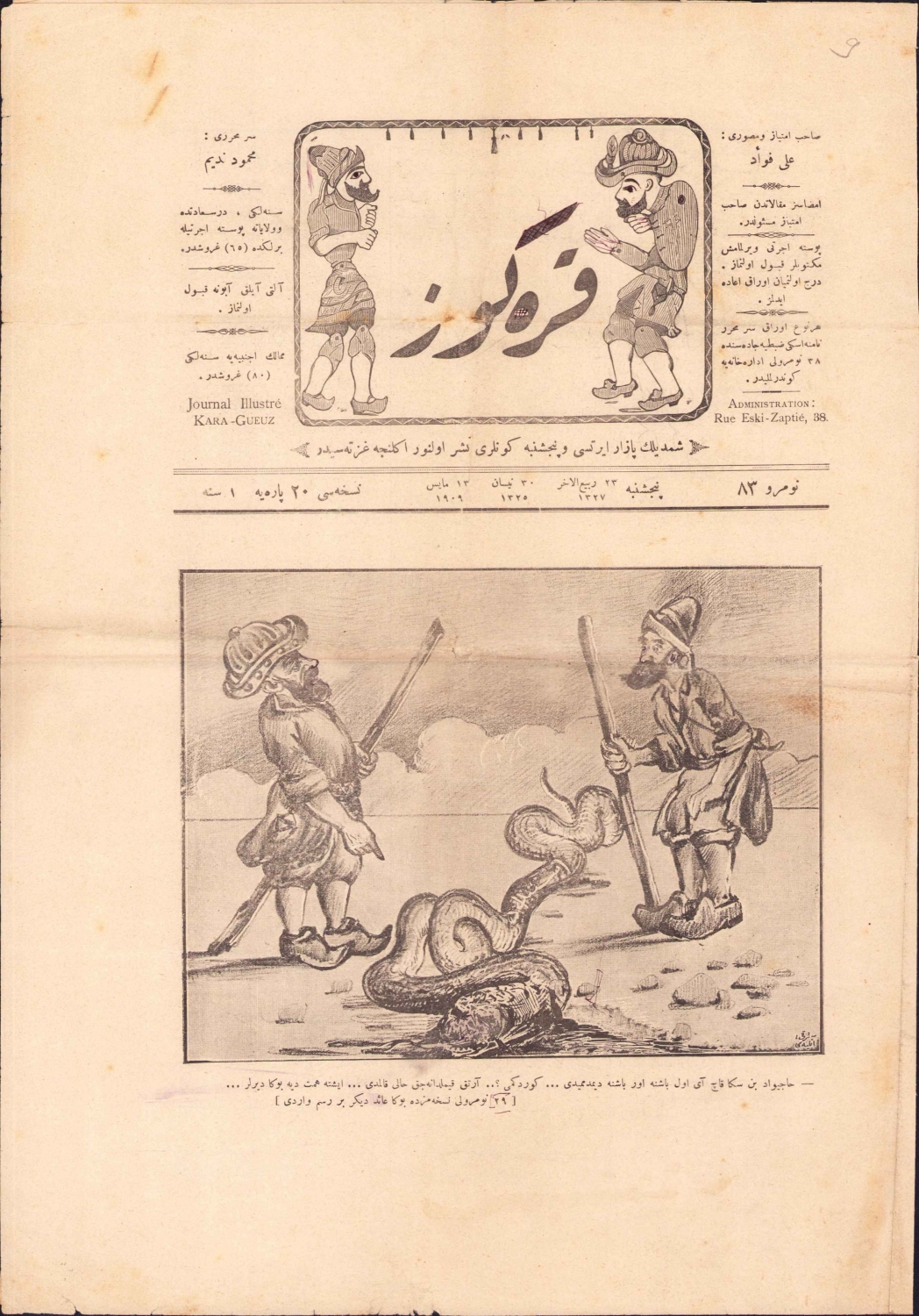 Osmanlıca Karagöz mizah gazetesi, 1327, 4 sayfa, 28x40 cm