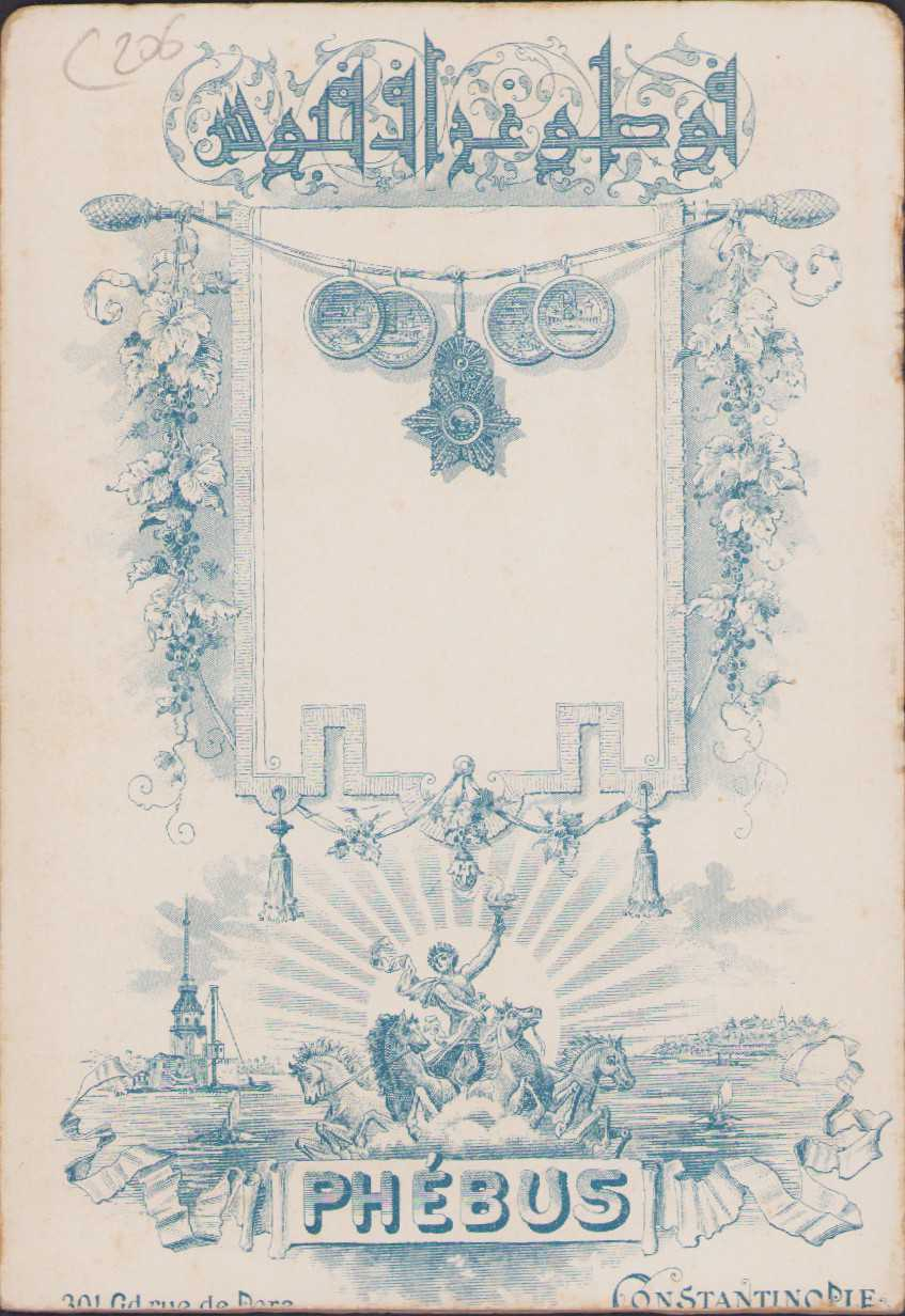 Osmanlı fesli bir bey, Kabin fotoğrafı, Phebus Fotoğrafhanesi, Constantinople, 1903 tarihli, haliyle
