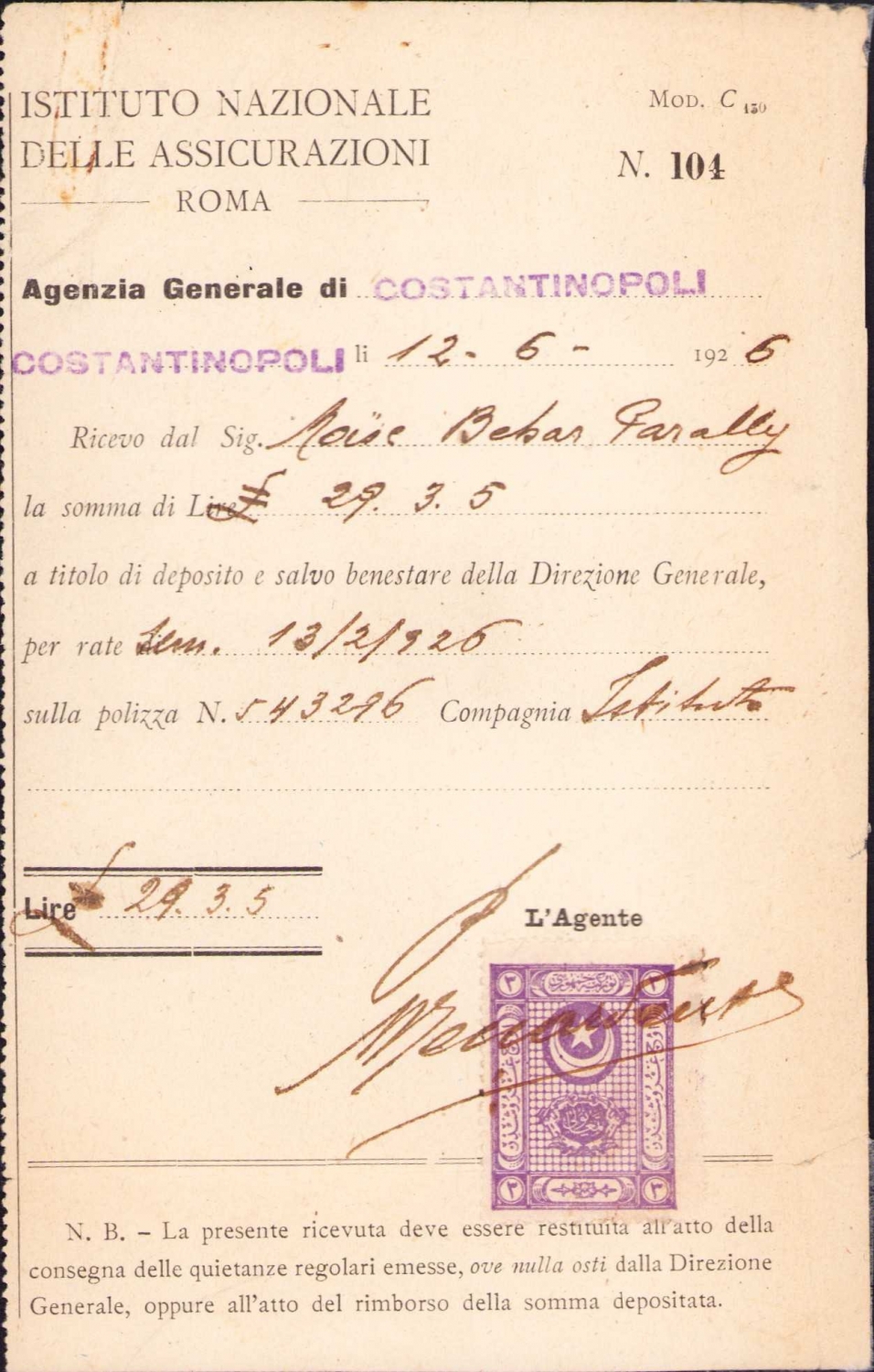 Istituto Nazionale Delle Assicurazioni Roma antelli fattura, 9x16 cam