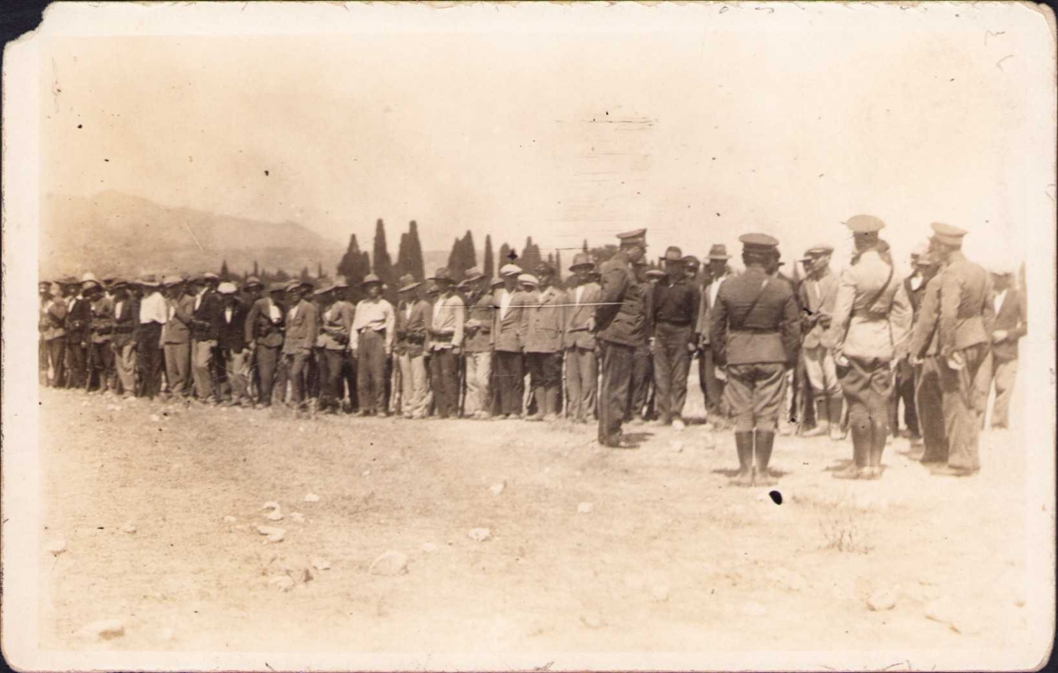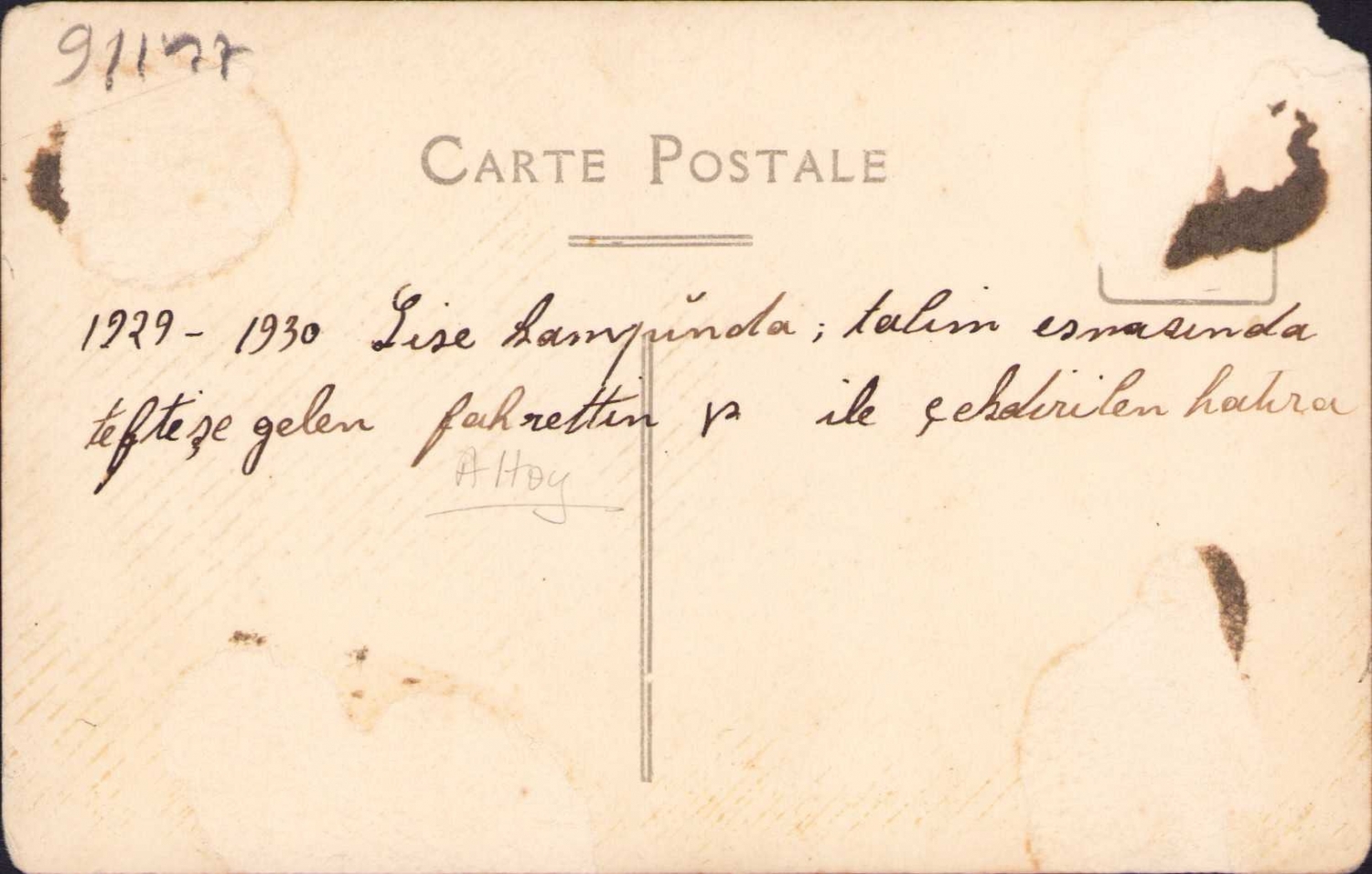 1929 - 1930 Lise talim esnasında teftişe gelen Fahrettin Paşa [Altay] ile çekilen hatıra, bir kenarı kopuk