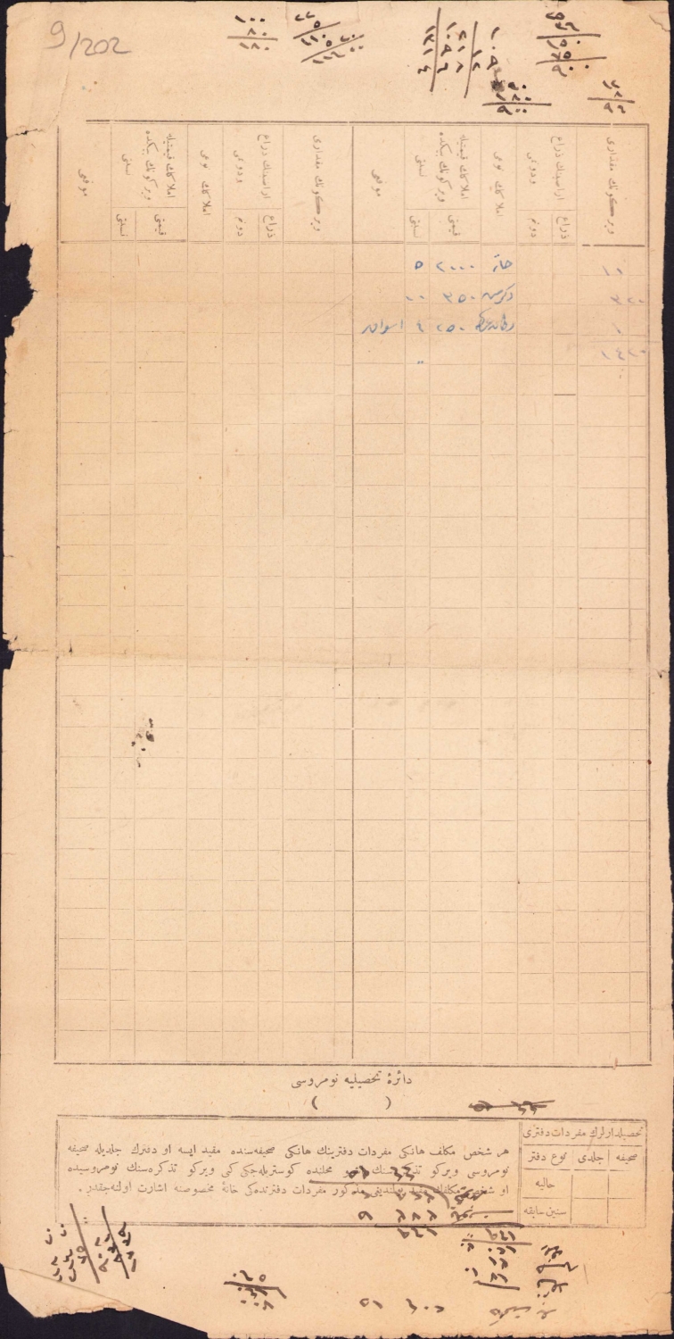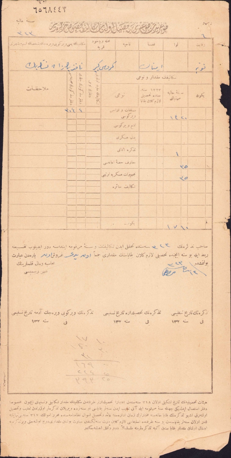 Osmanlı Doğrudan doğruya tahsil olunan mükellefe mahsus tezkere, Konya Ermenek, 1323, 16x35 cm
