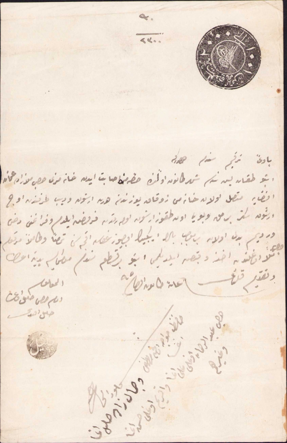 Osmanlı Sandıklı Sandık emini Hacı Molla Zade Osman beye ait senet, 13x20 cm