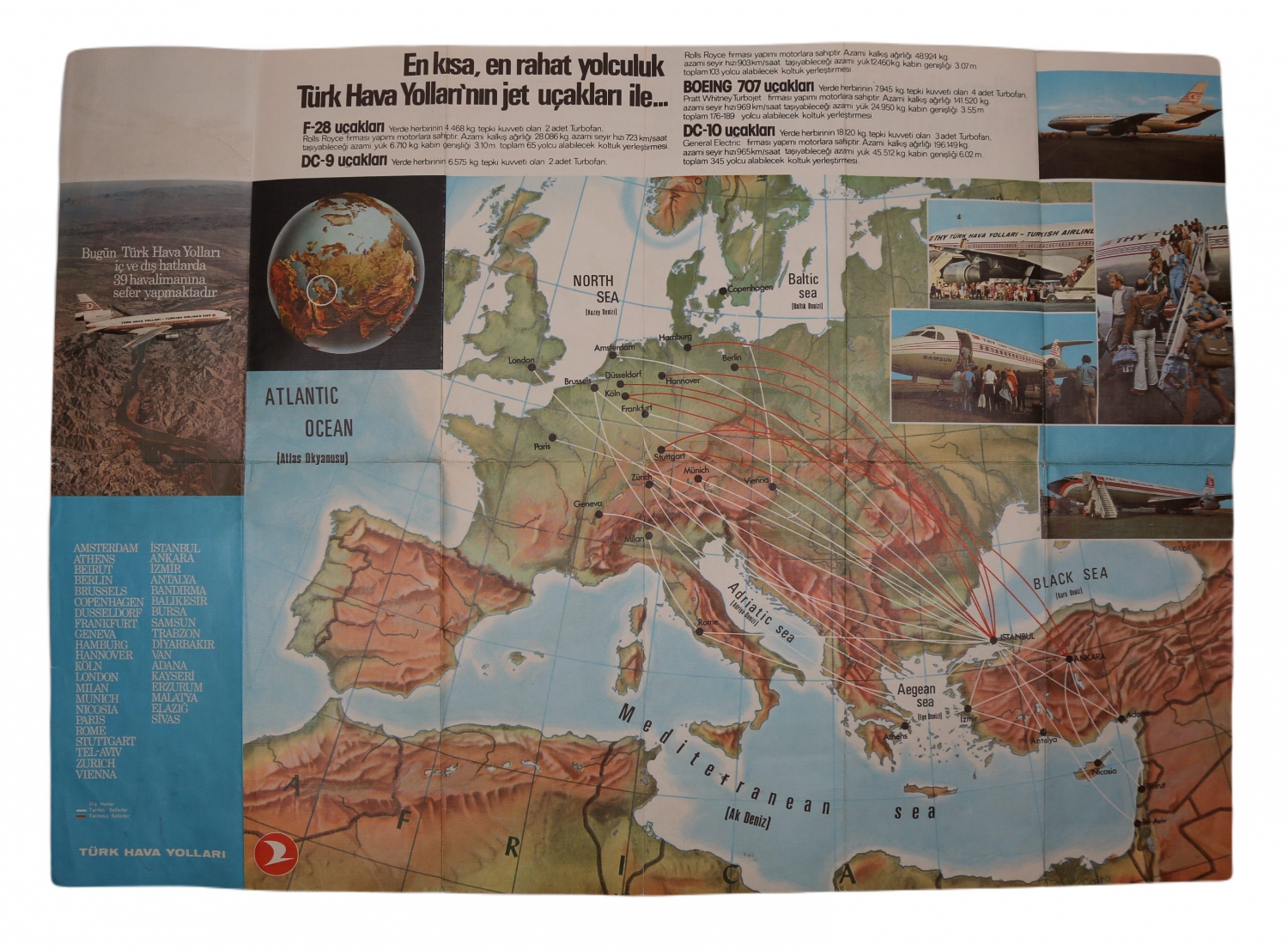 Türk Hava Yolları uçuş haritası, 66x48 cm