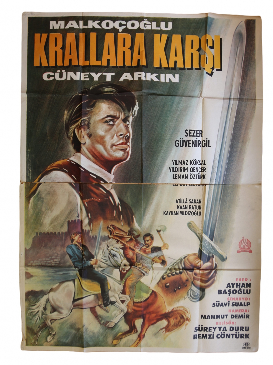 Malkoçoğlu Krallara Karşı - Cüneyt Arkın, film afişi, ortadan kopuk, 100x134 cm