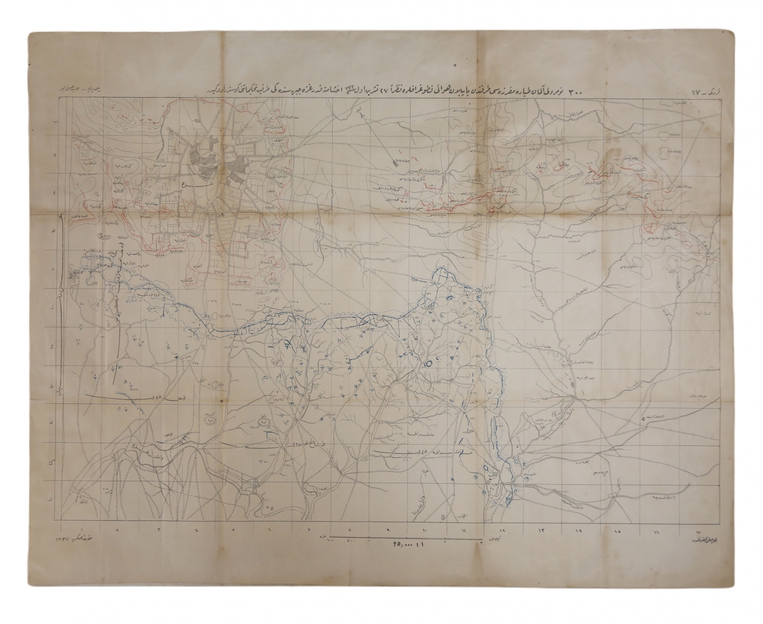 Osmanlıca İtilaf ve İttifak devletleri arasında Gazze Savaşında Alman Tayyareleri tarafından alınan havza fotoğraflarına göre 1332 kadar tarafların birbirine saldırı göstergesi, Matbaa-i Askeri, Yıldırım Hüseyin Hüsnü, İzmir, 70x56 cm