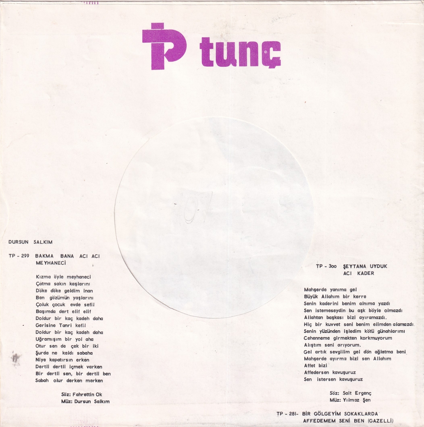 Dursun Salkım, plak kabı