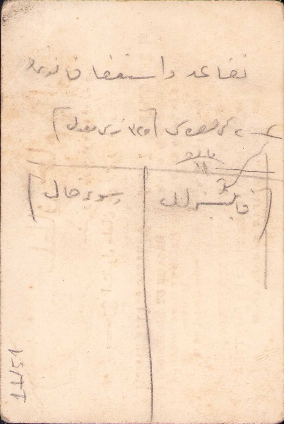 Kartın arkası Osmanlıca yazılı vaziyette olup, ön yüzünde kurşun kalemle karalamalar mevcuttur.