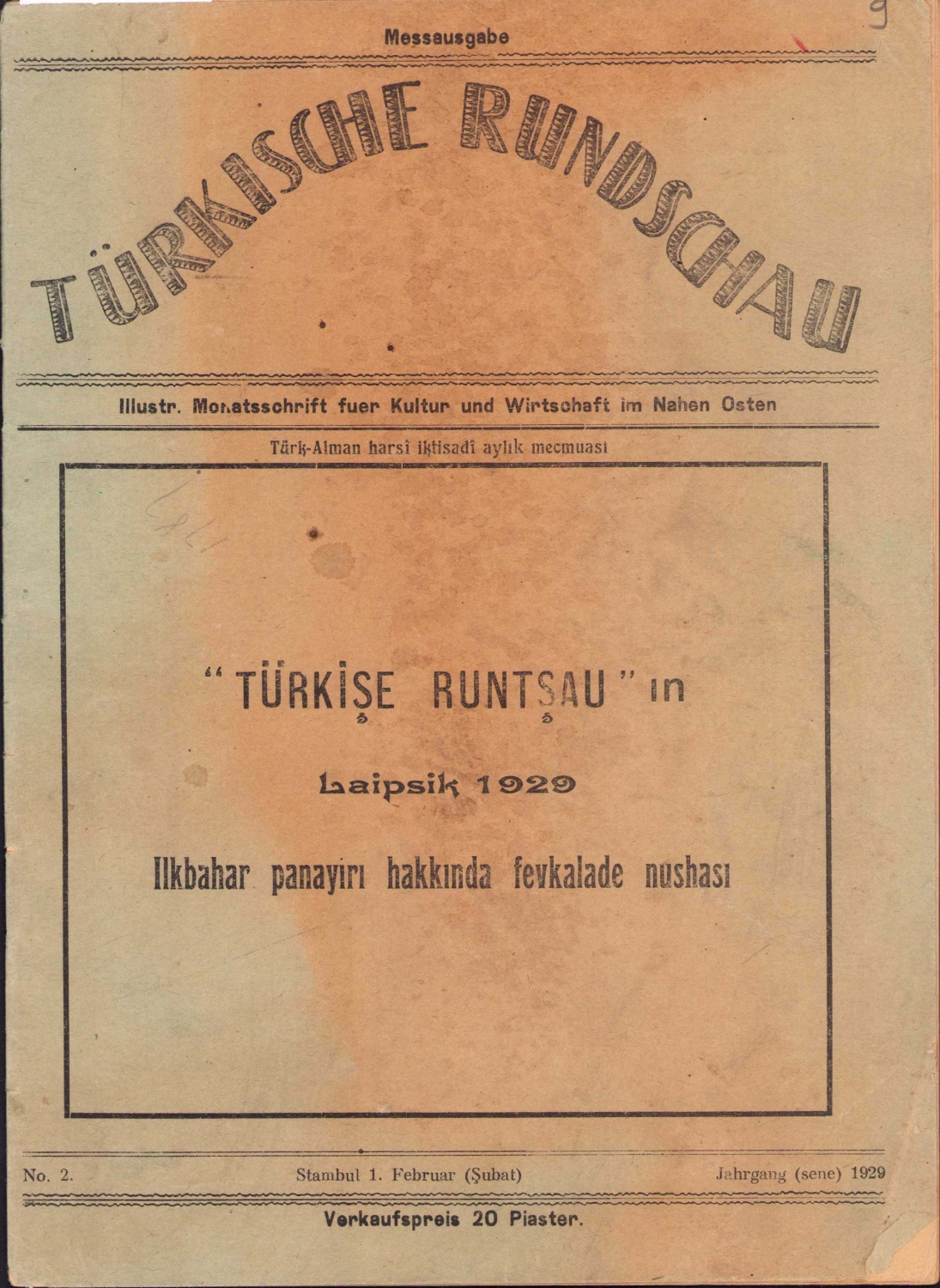 Türkische Rundschau, Türk Alman Harsi İktisadi Aylık Mecmuası, 'Laipsik 1929' İlkbahar Panayırı Hakkında Fevkalade Nüshası, Türkçe ve Almanca, Şubat 1929 tarihli, 42 sayfa, 20x27,5 cm.