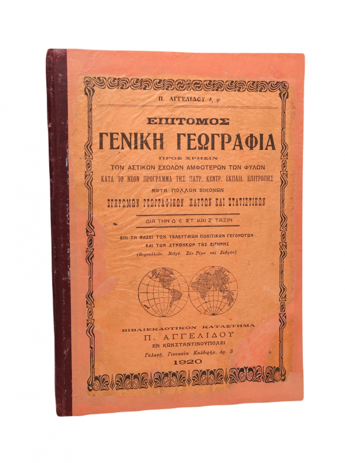 Muhtasar Genel Coğrafya, P. Angelidou, Konstantinopolis, 1920, Rumca, 64 sayfa, 20,5x28,5 cm.