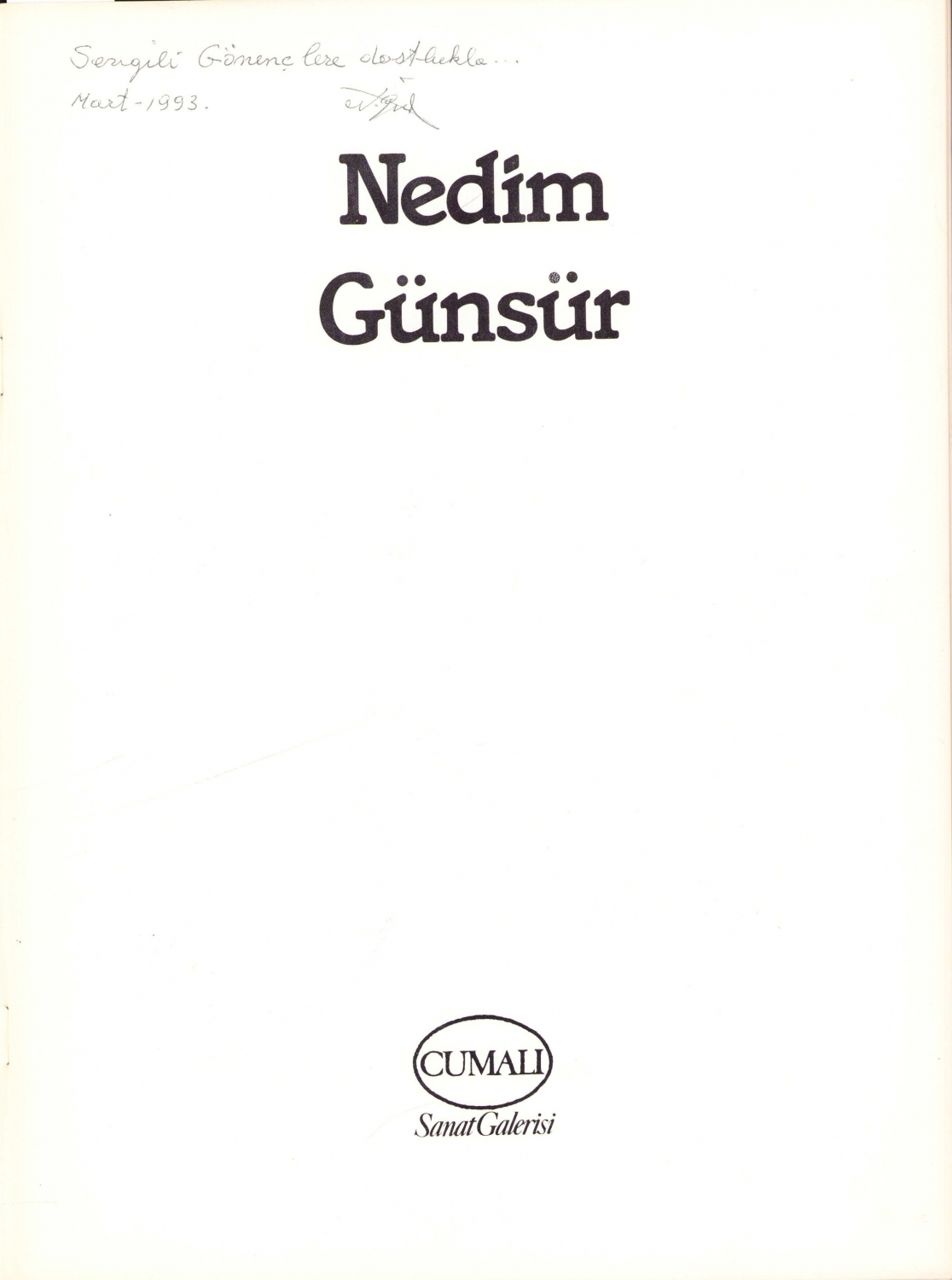 Nedim Günsur, Cumalı Sanat Galerisi, Nedim Günsur'dan [Turgay] Gönenç ailesine imzalı ve ithaflı, 24 sayfa, 24x32,5 cm.