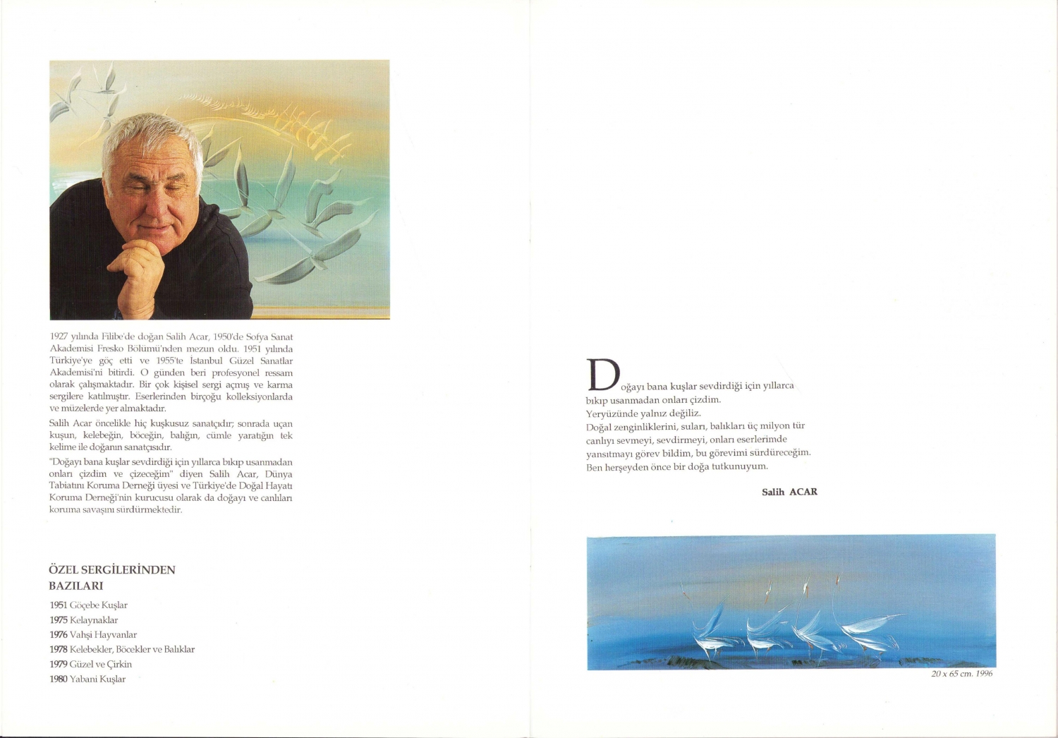 Salih Acar, Salih Acar'dan imzalı, Yaşar Eğitim ve Kültür Vakfı, İzmir, 1997, 24 sayfa,19,5x27 cm.