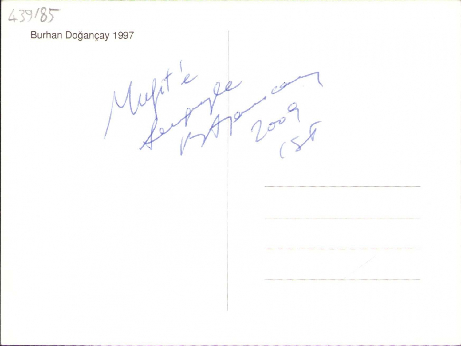Burhan Doğançay - 1997, Burhan Doğançay'dan imzalı ve ithaflı kartpostal, 15x11 cm.