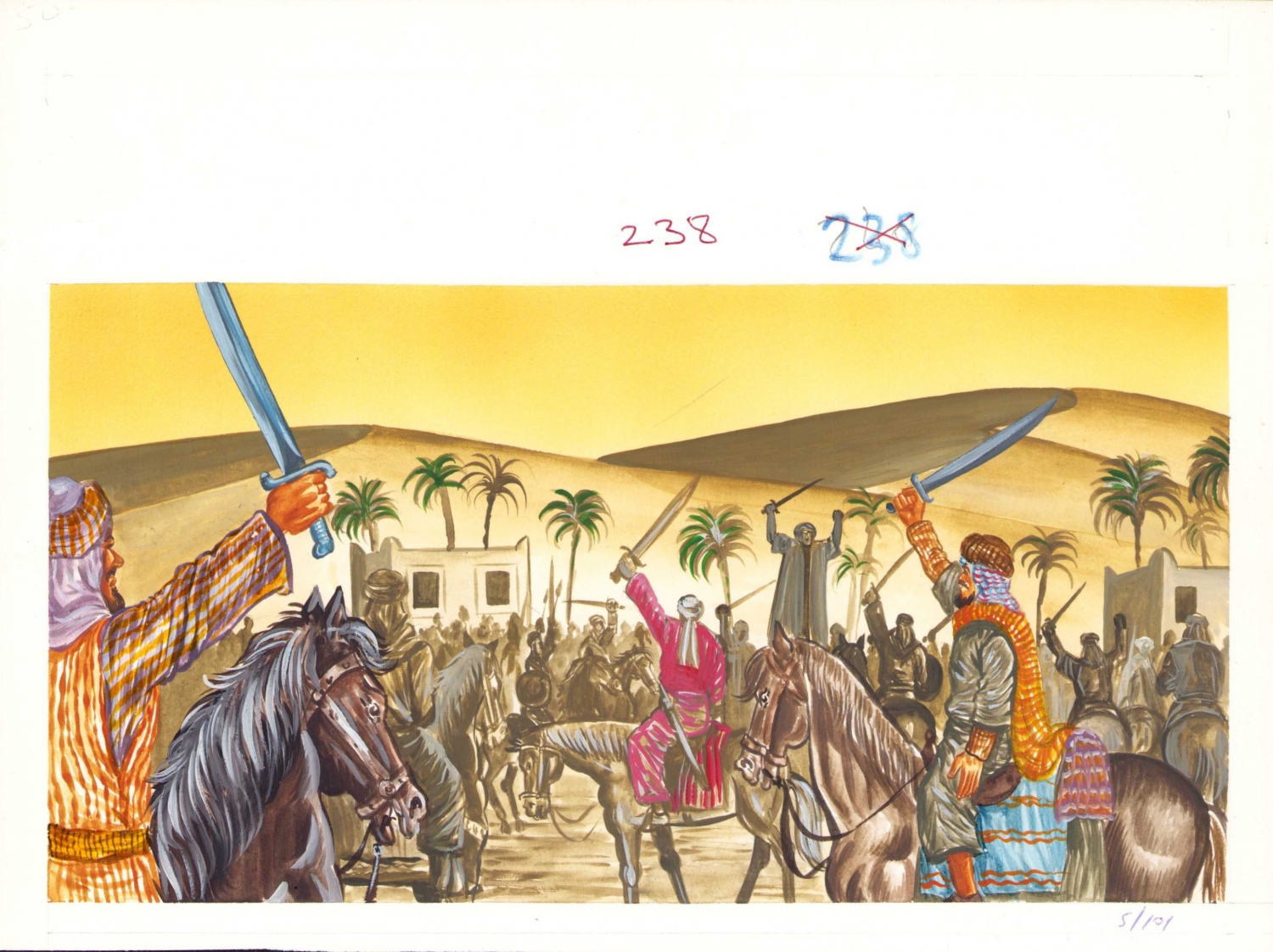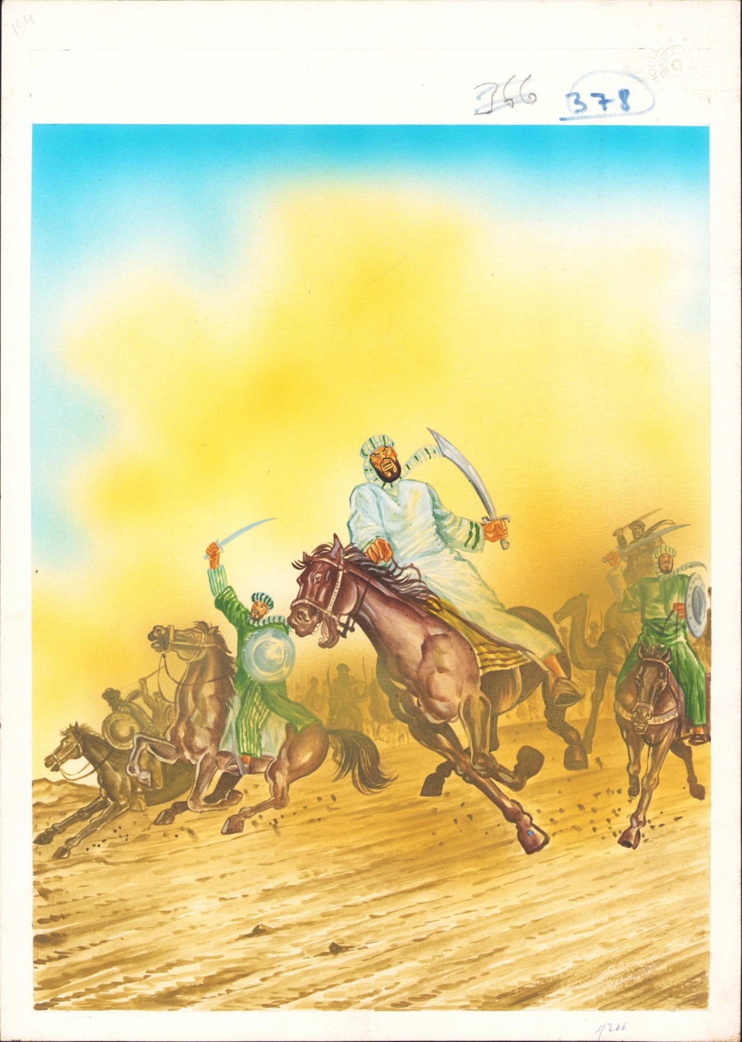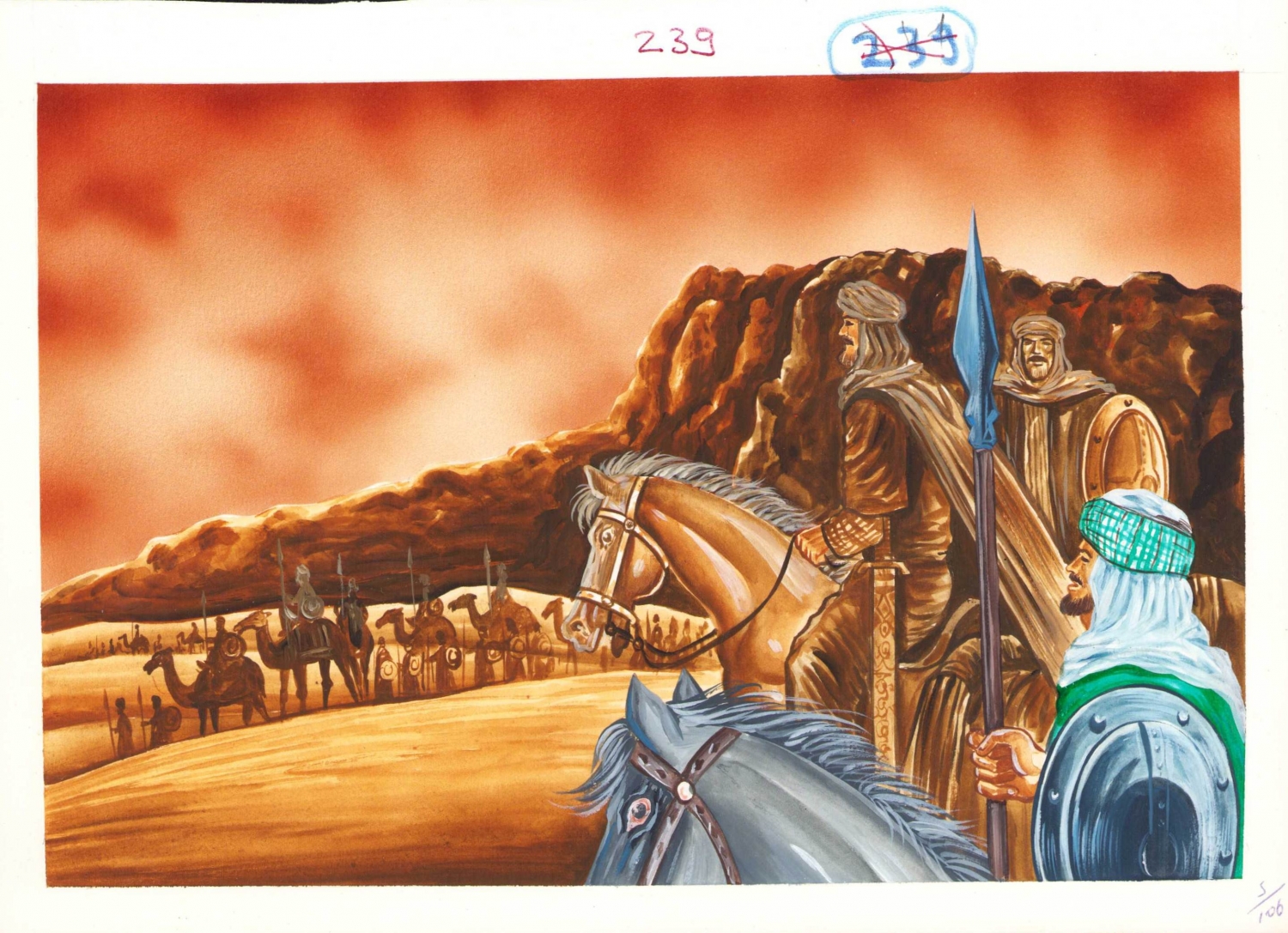 Televizyonda yayınlanmak üzere hazırlanmış, 'İslam Tarihi' başlığı altında 'Uhud Savaşı'nı tasvir eden muhtelif ebatlarda orijinal çizimler, 56 adet.