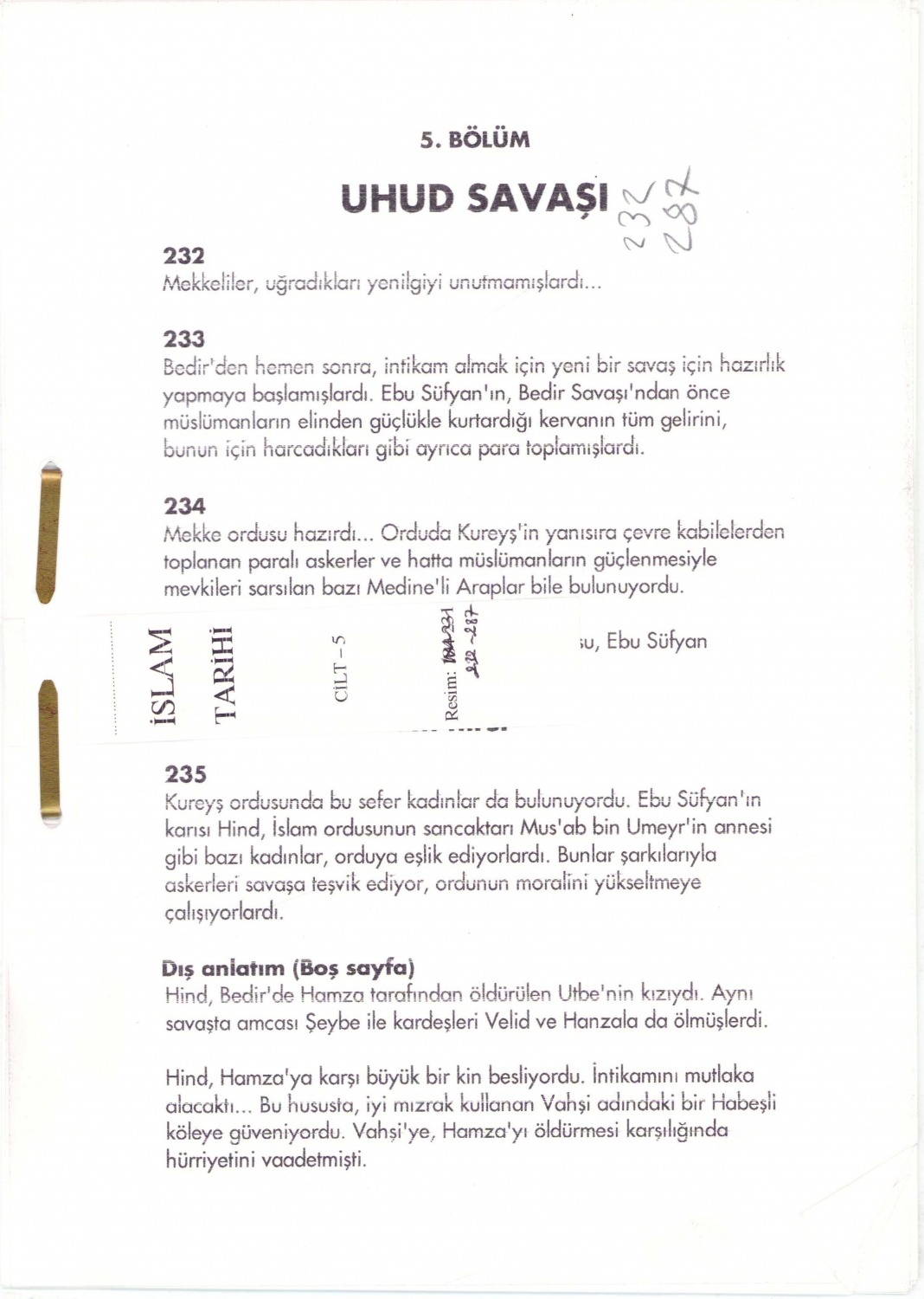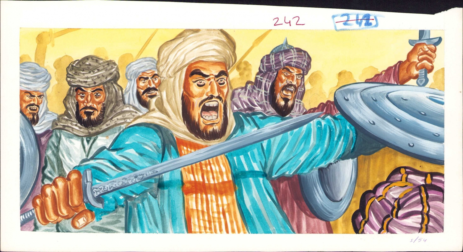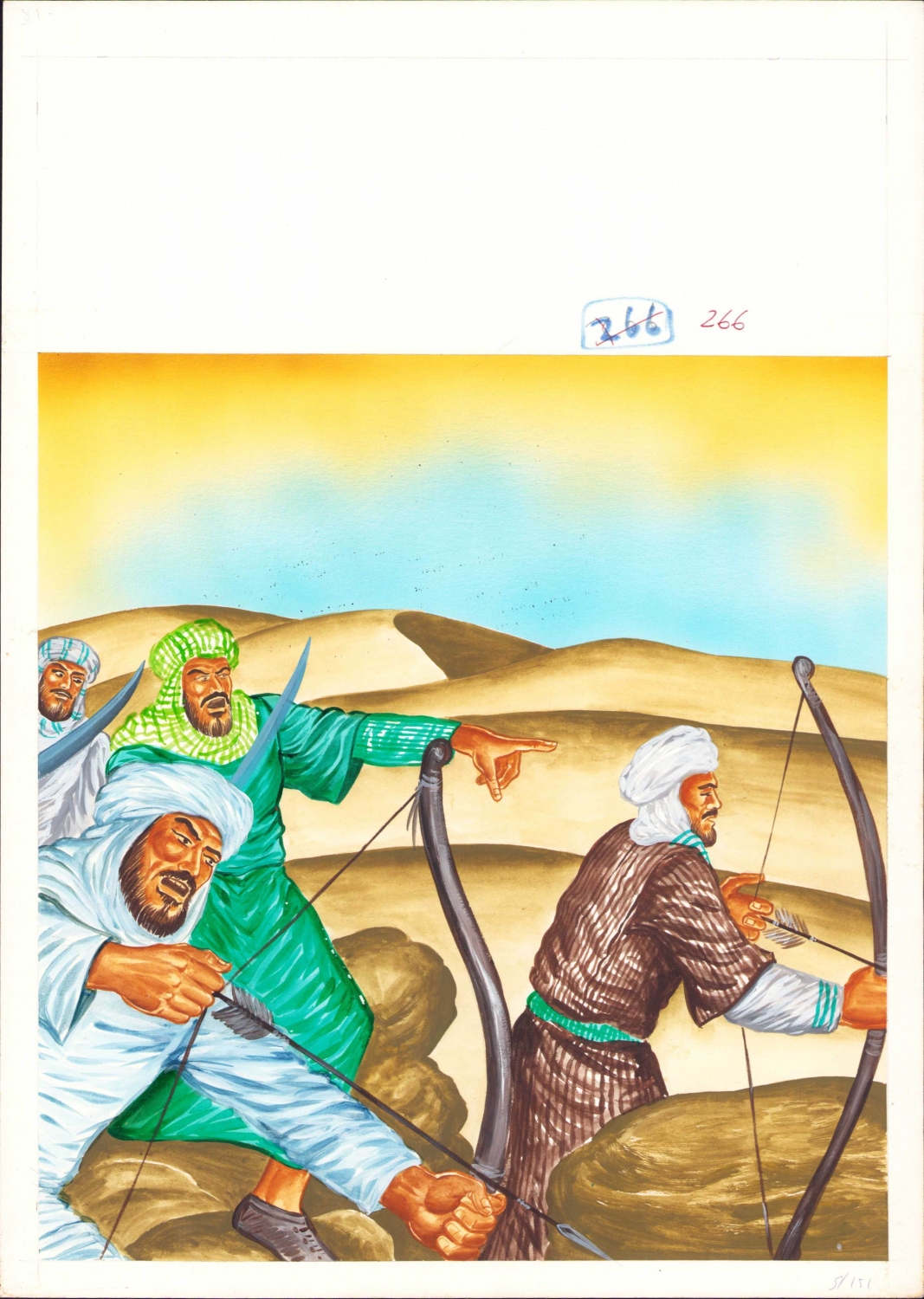 Televizyonda yayınlanmak üzere hazırlanmış, 'İslam Tarihi' başlığı altında 'Uhud Savaşı'nı tasvir eden muhtelif ebatlarda orijinal çizimler, 56 adet.