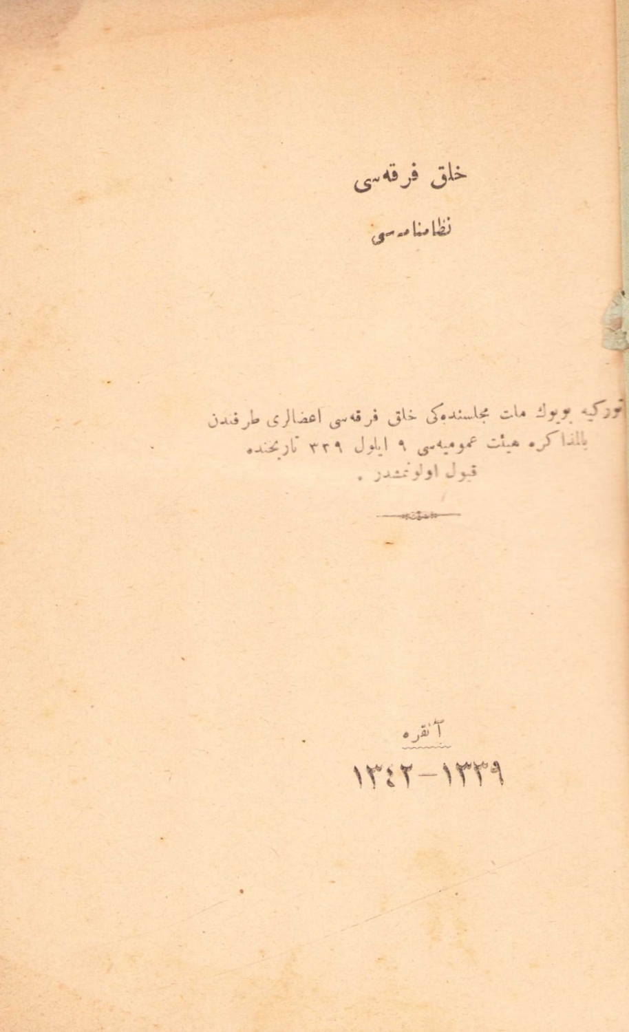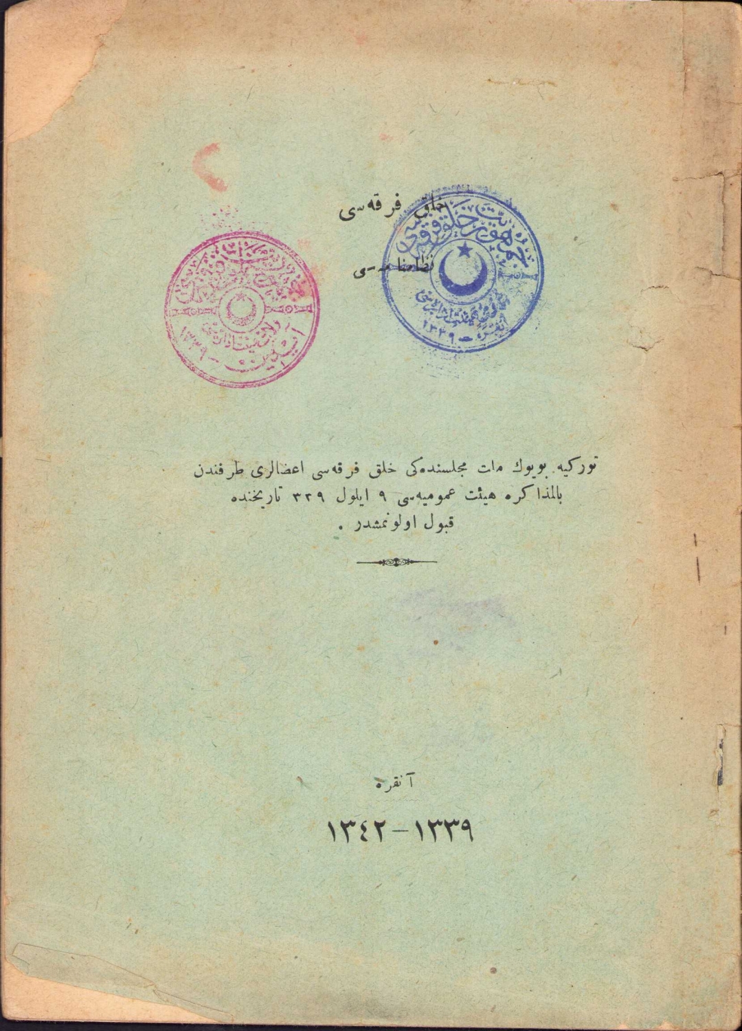 Halk Fırkası Nizamnamesi, Ankara, 1339-1346, Cumhuriyet Halk Fırkası damgalı, 18 sayfa, haliyle, 14x20 cm.