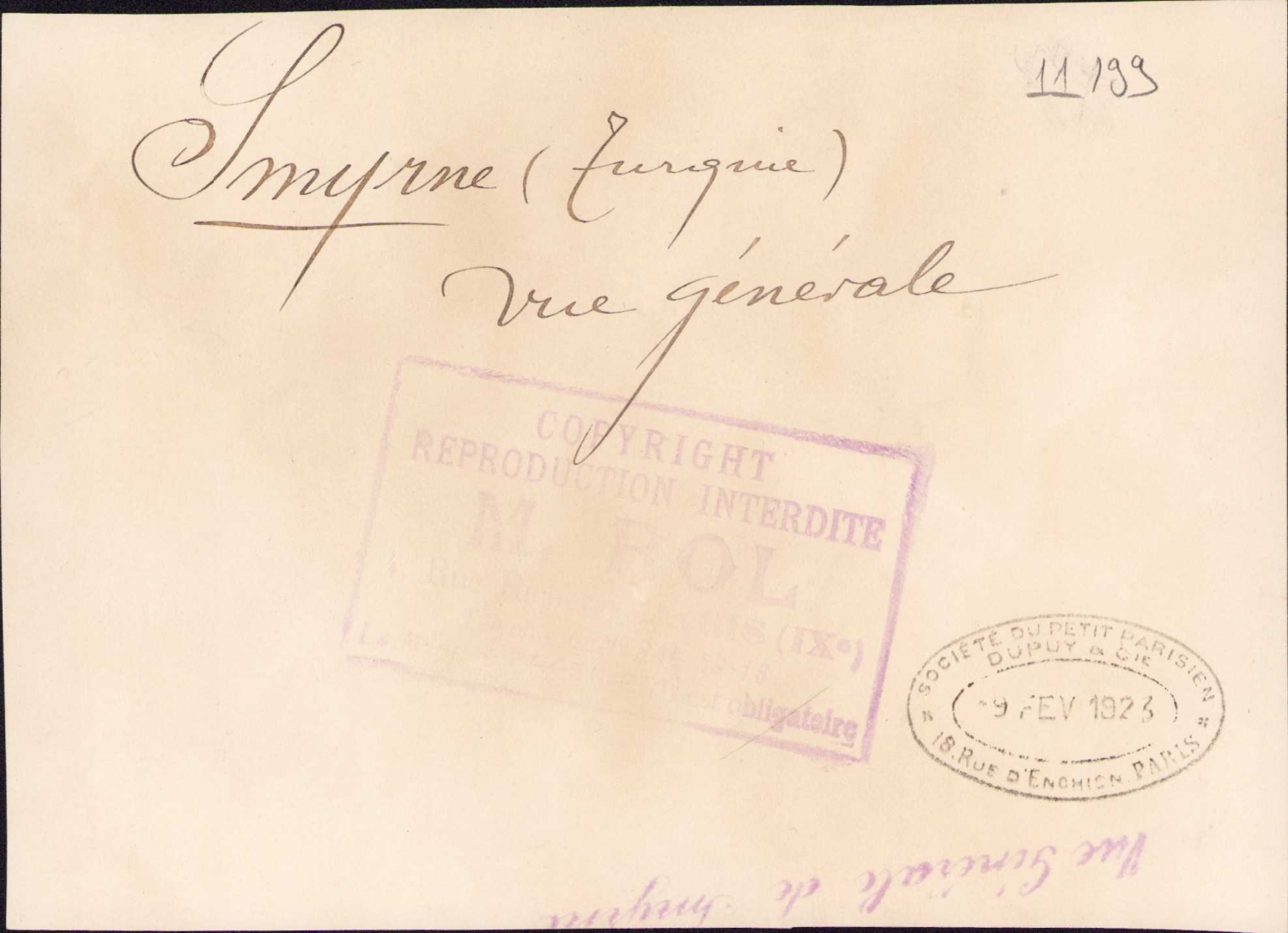 İzmir genel görünüm, Smyrne, Copyright Reproduction Inderdite M. Rol ve Societe Du Petit Parisien-1923 damgalı, 16,5x12 cm.