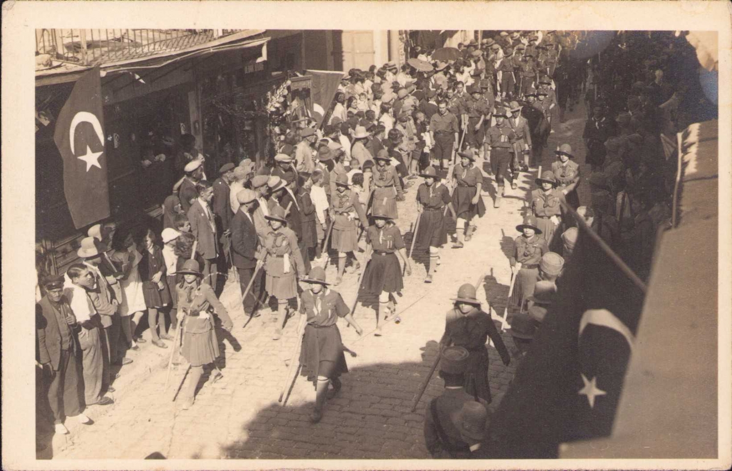 İzmir'in kurtuluş günü kutlamaları, kortej yürüyüşünde izciler, 9 Eylül 1930 tarihli.