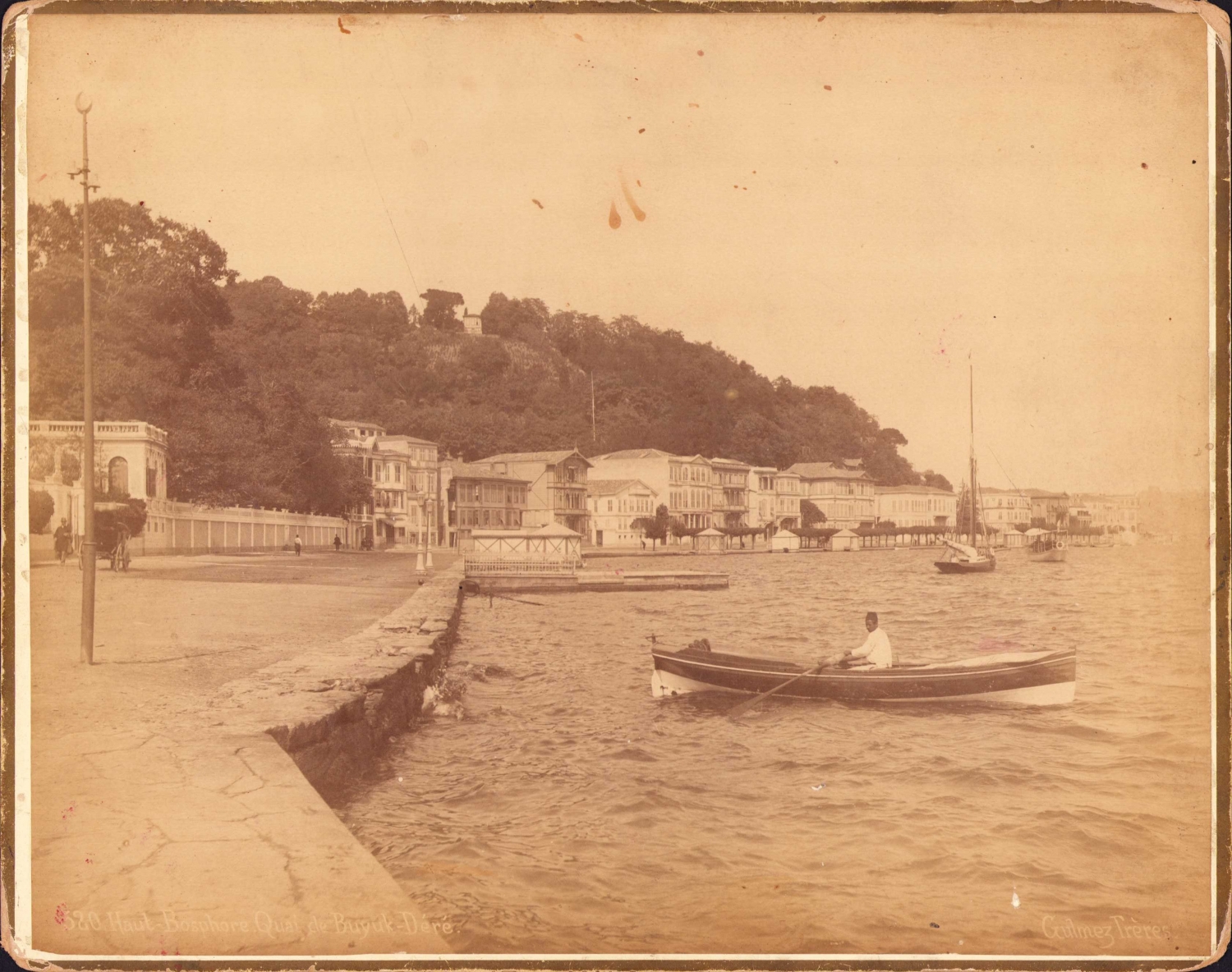 Osmanlı dönemi sepya fotoğraf, İstanbul Boğazı Boğazdere, Gülmez Freres, "Sultanın Fotoğrafçısı" anlamında Fransızca damgalı, 28,5x23 cm.