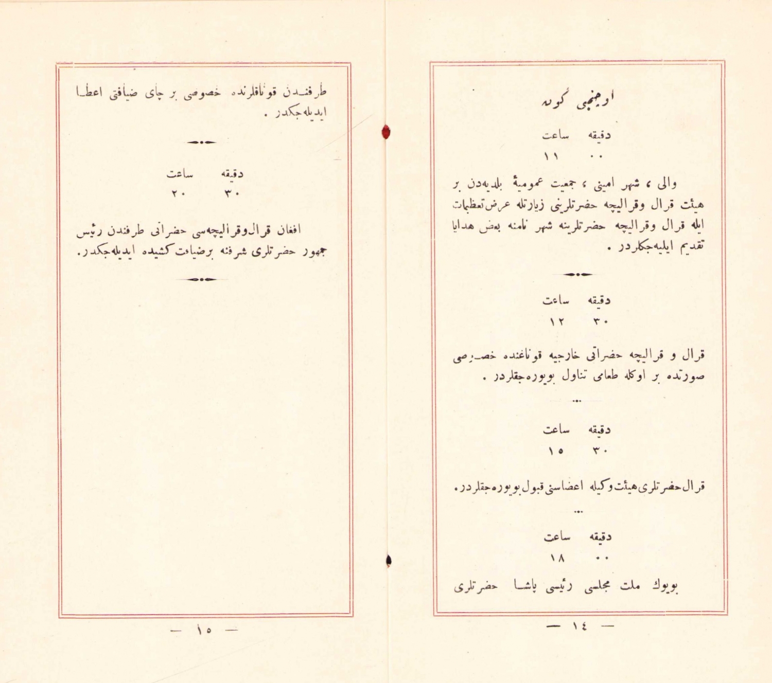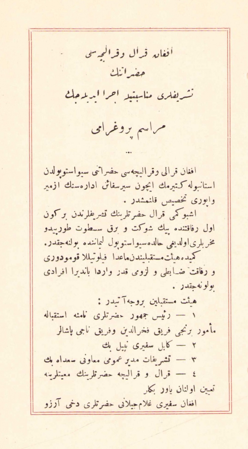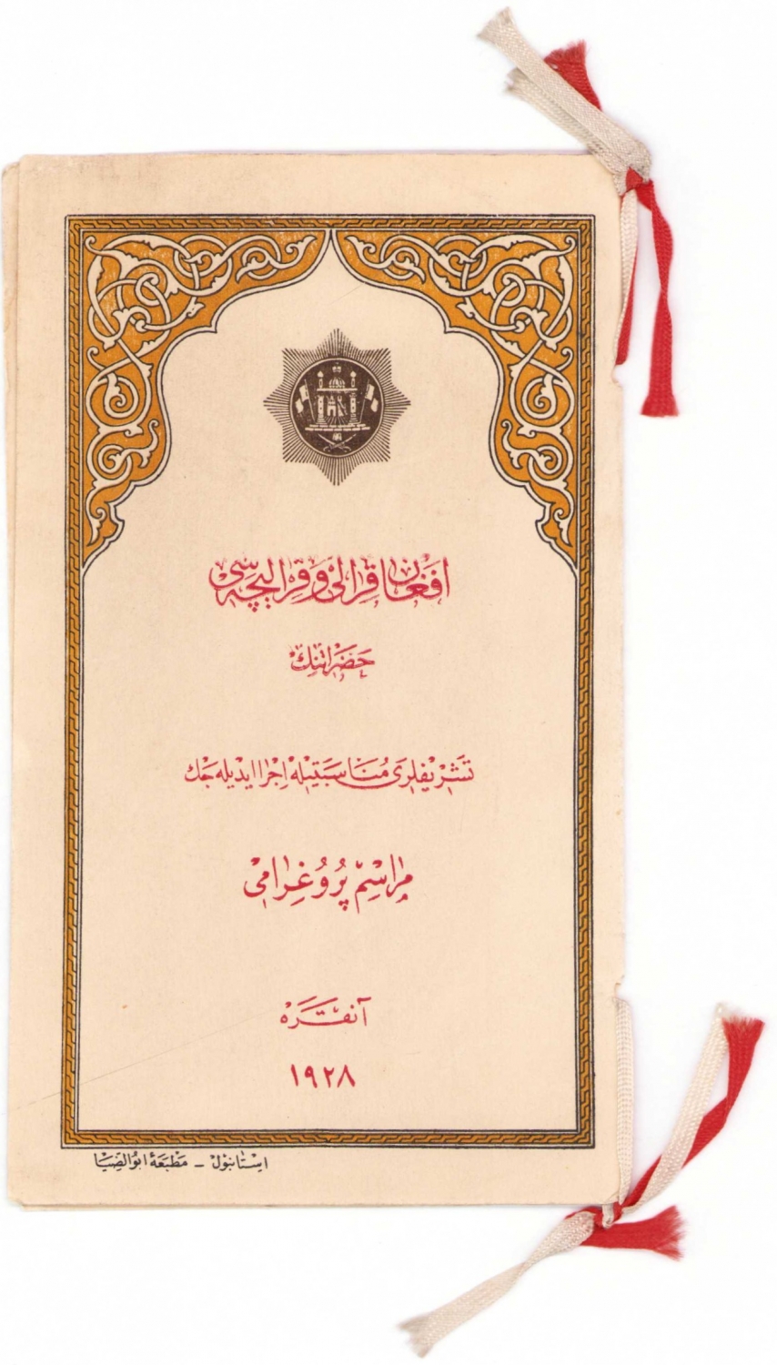 Afgan Kralı ve Kraliçesi Hazeratı'nın Teşrifleri Münasebetiyle İcra Edilecek Merasim Programı, Ankara, 1928, Matbaa-i Ebuziya, 15 sayfa, 10,5x18 cm.