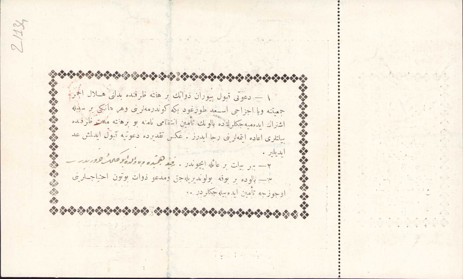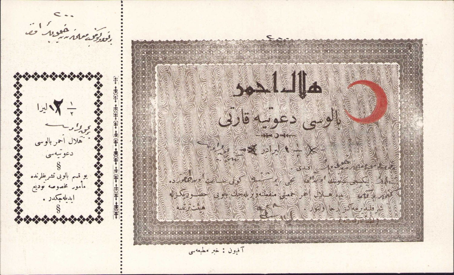 Hilal-i Ahmer Balosu Davetiye Kartı, Afyon Haber Matbaası, 1928 tarihli, 1/2 liralık, Osmanlıca, 23x14 cm.