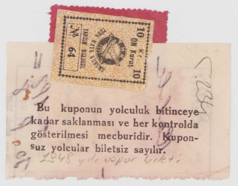 Denizyolları Vapur Yolcu Kuponu, 8x5, THK pullu
