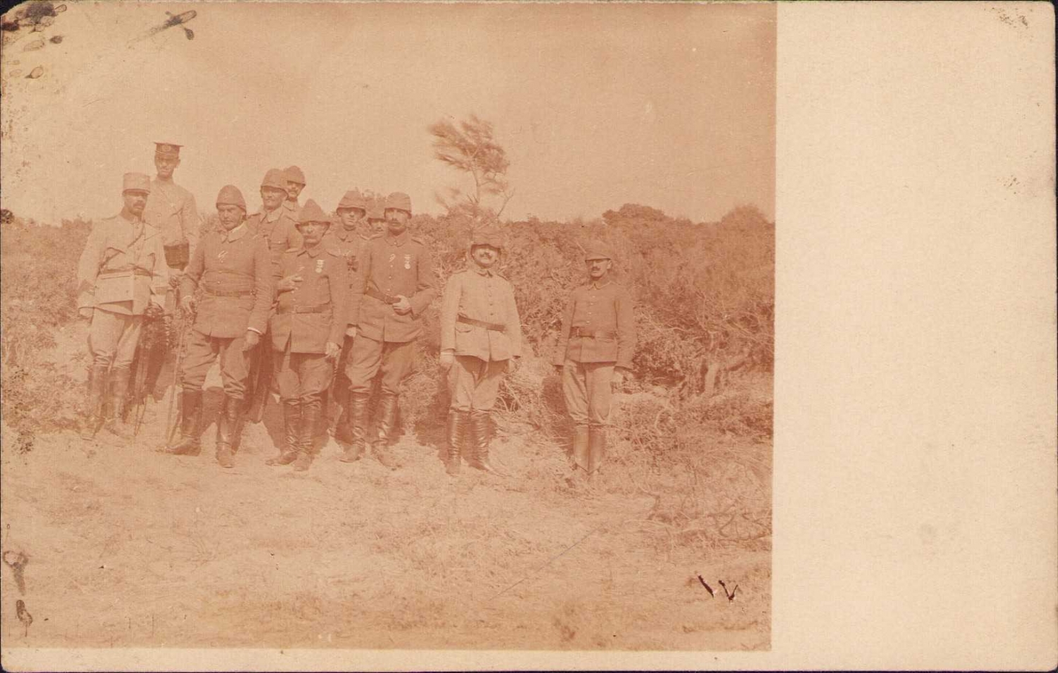 Birinci Dünya Savaşı'nda Yusuf İzzet Paşa ve Kolordu Kumandanları hatıra fotoğrafı, Çanakkale Kemal Yeri Civarı, 1331 tarihli.
